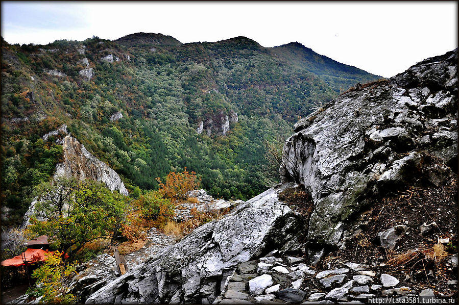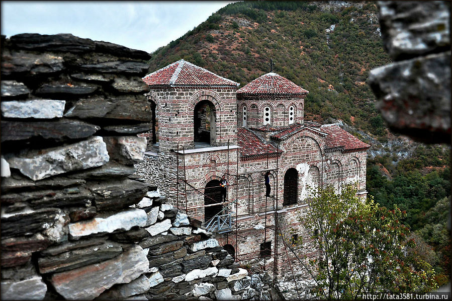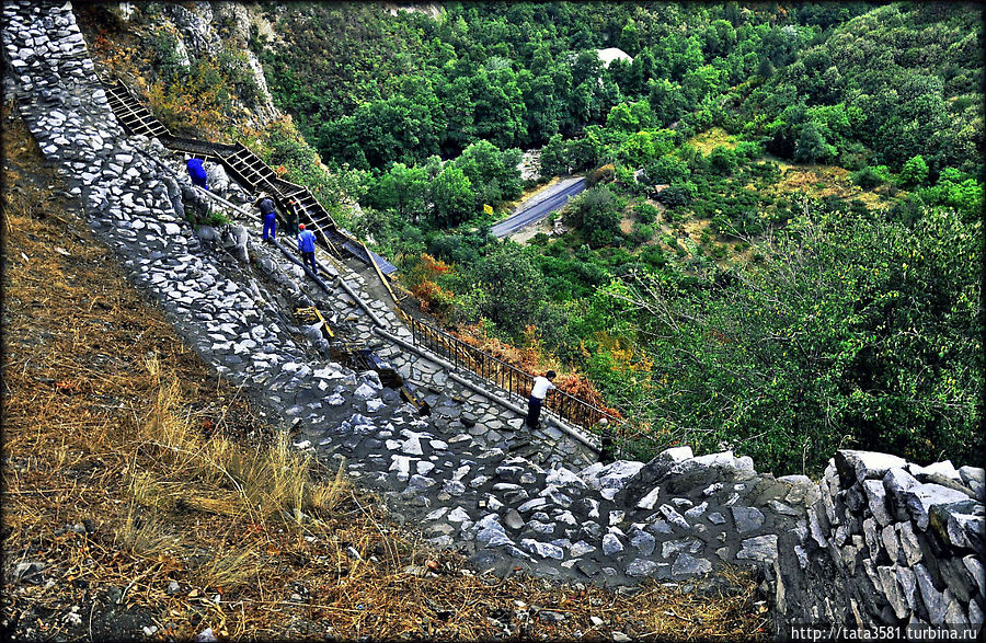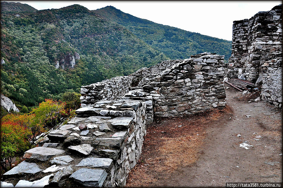 Асенова крепость на нашем пути возникла совершенно неожиданно, про нее мы не знали, не собирались, и вообще ехали в Бачковский монастырь, увидели указатель и конечно свернули. По горной дорожке подъехали прямо к крепости, вернее к её развалинам. У подножия крепости есть бесплатная парковка.