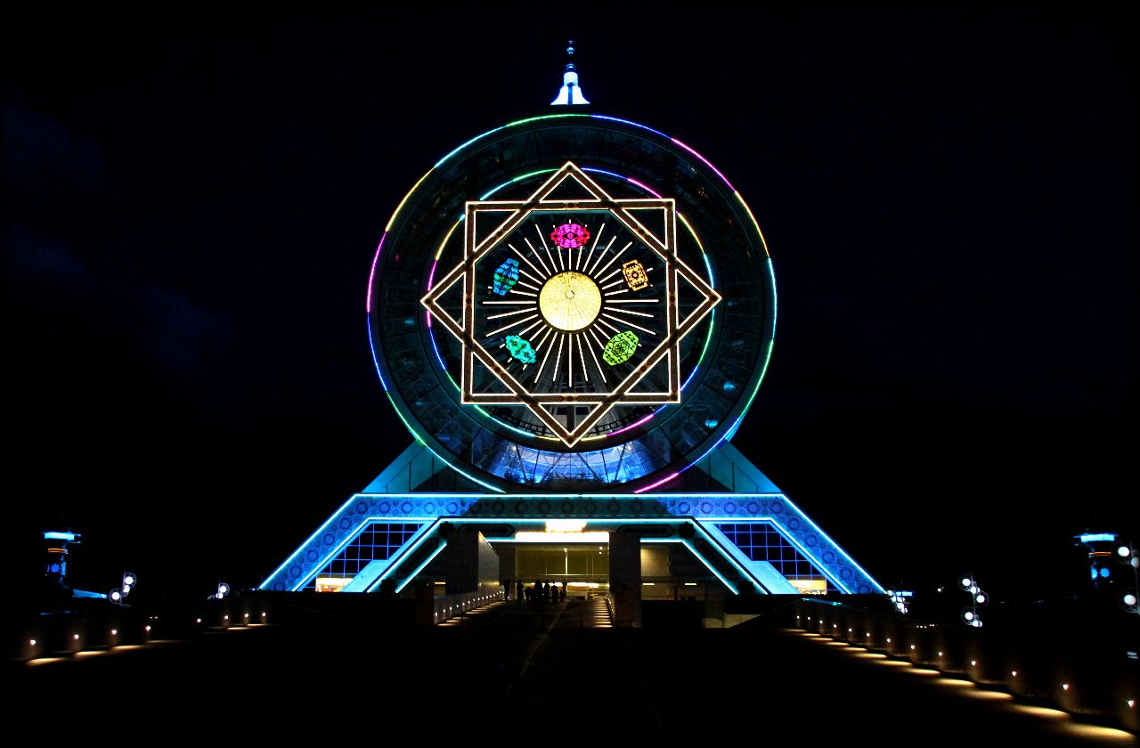 Когда вышли на улицу было уже темно. Подсветка всех зданий и сооружений тут реально красивая. Обязательно прокатитесь по ночному Ашхабаду.