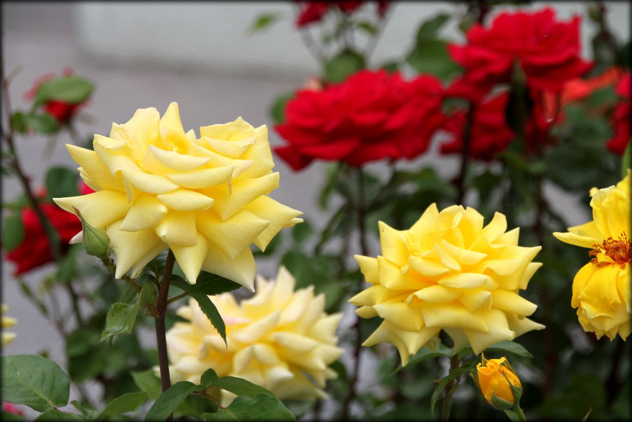 Фонари, скамейки, а сколько цветов...