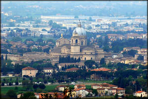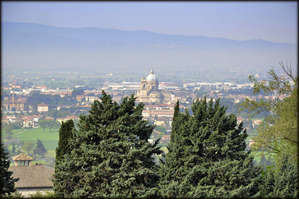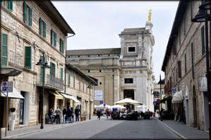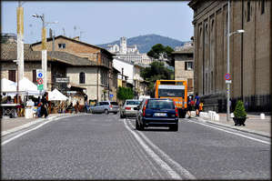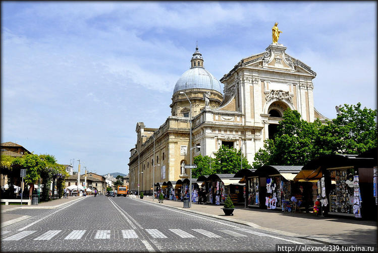 Базилика Санта-Мария-дельи-Анджели находится в одноименном городке у подножия холма, на котором расположен город Ассизи.