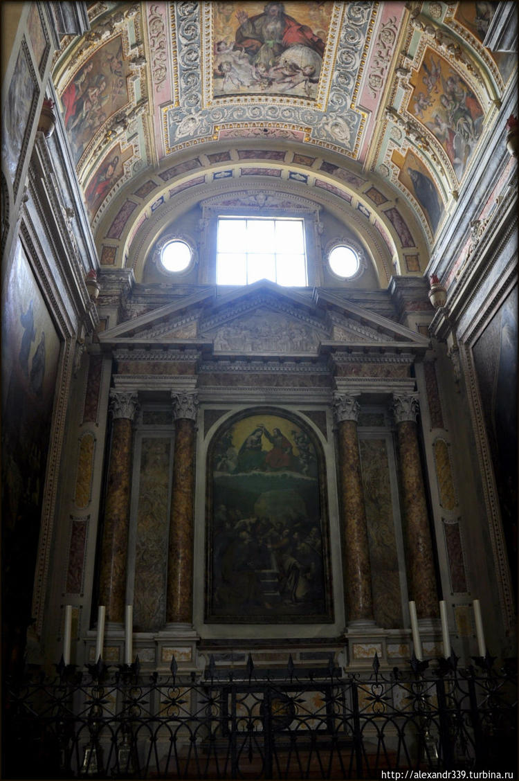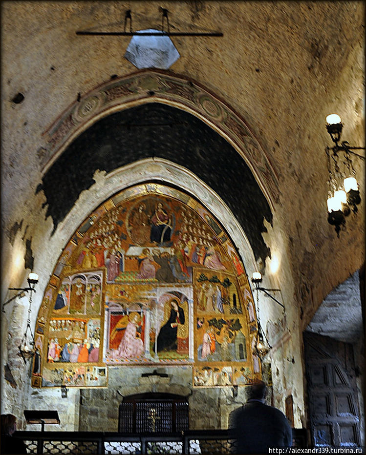 В капелле сохранились почерневшие от времени своды, алтарный триптих XIV века, фрески XVI века, произведения из майолики Андреа делла Роббиа (ок. 1490г.), портрет святого Франциска, приписываемый Чимабуэ, распятие работы Джунта Пизано (1236г.).
