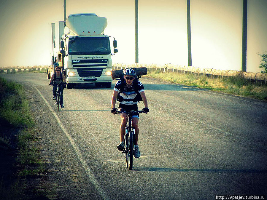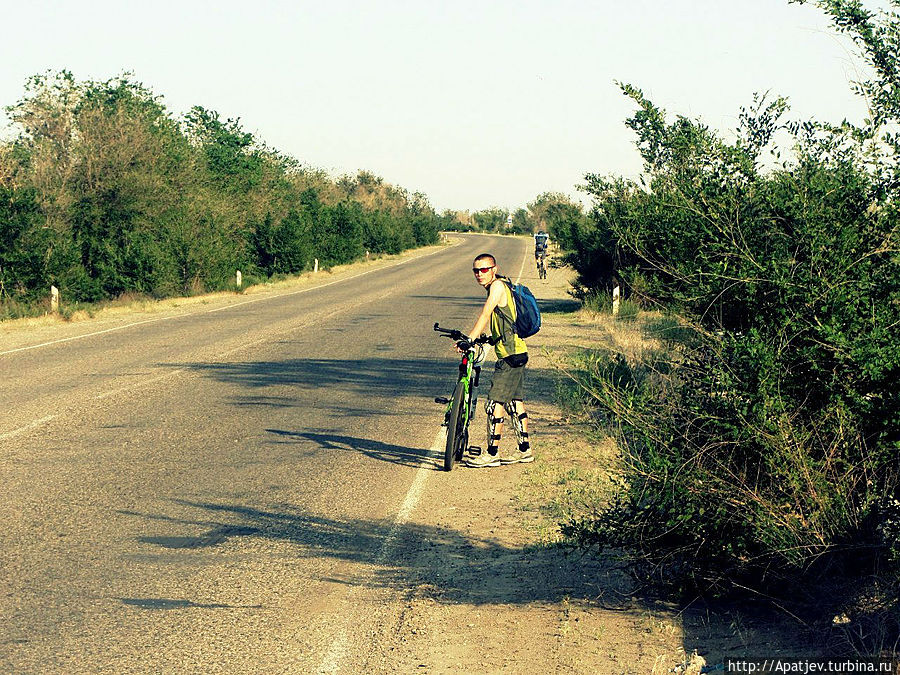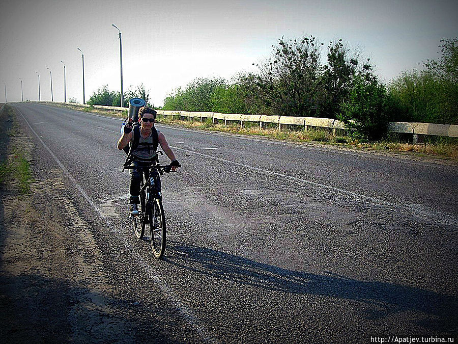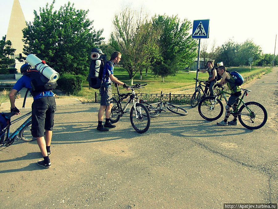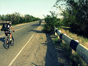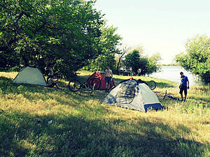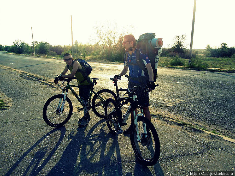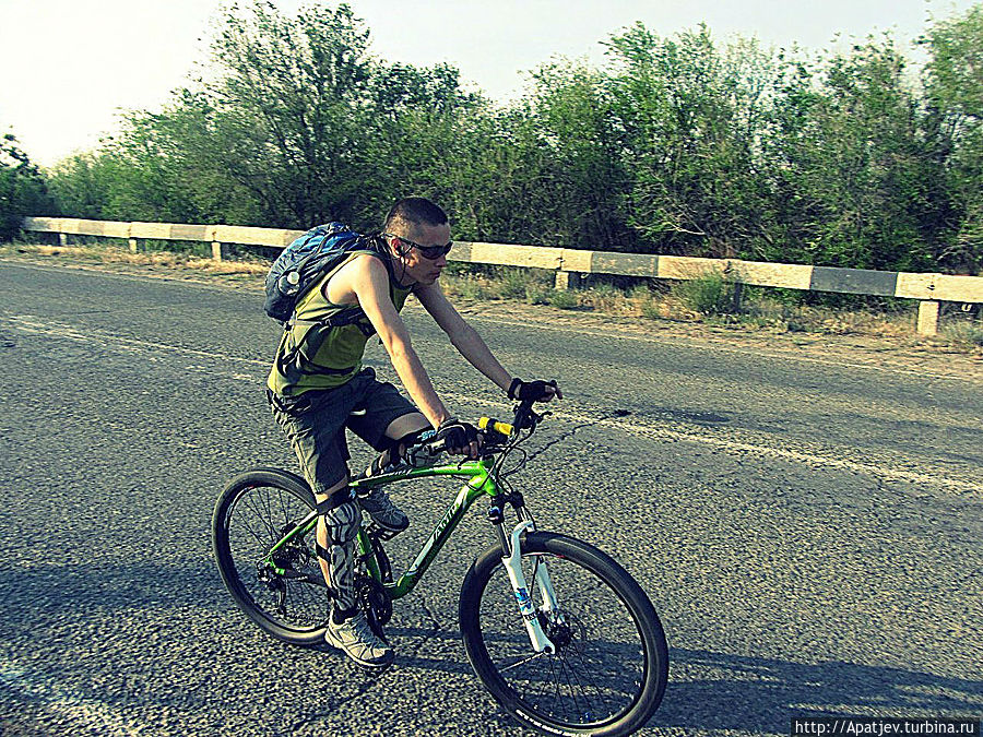 Дата: 12.05.2012г. — 13.05.2012г. Пройденный путь: 96 км. Средняя скорость: 24 км/ч. Максимальная скорость: 54 км/ч. Стартовали поздним вечером. По пути был один прокол у члена группы. За 3 часа доехали до Аксарайска и разбивали лагерь в свете фонарей. Планировали встать на берегу, но в темноте попытки выйти на него не привели к успеху и решили ставить палатки в небольшой низине, в которой постоянно пахло газом с находящегося неподалеку Астраханского Газоперерабатываюшего Завода. Поужинали и улеглись глубокой ночью. Ночь была весьа прохладной. На утро пошли на разведку искать берег реки. После неё были сильно удивлены тем, что берег находился буквально в 50 метрах от нашего лагеря. Передислоцировались туда в спешном порядке. Несколько раз ездили в поселок за водой и продуктами. Купаться не решились, водичка была еще не ахти. Во второй половине дня выдвинулись обратно в город. Проехав километров 20, решили добираться дальше на электричке, хотя некоторые участники хотели ехать своим ходом. В целом походом остались довольны все. Ходите в походы и будьте здоровы!