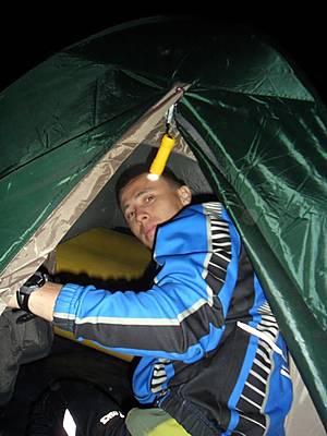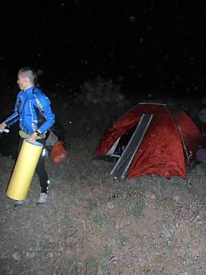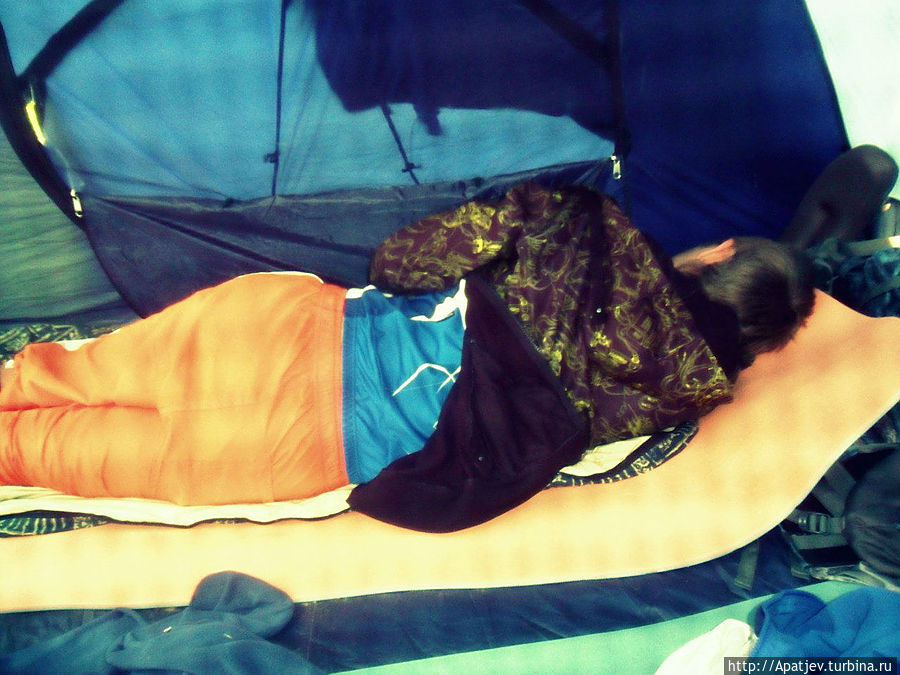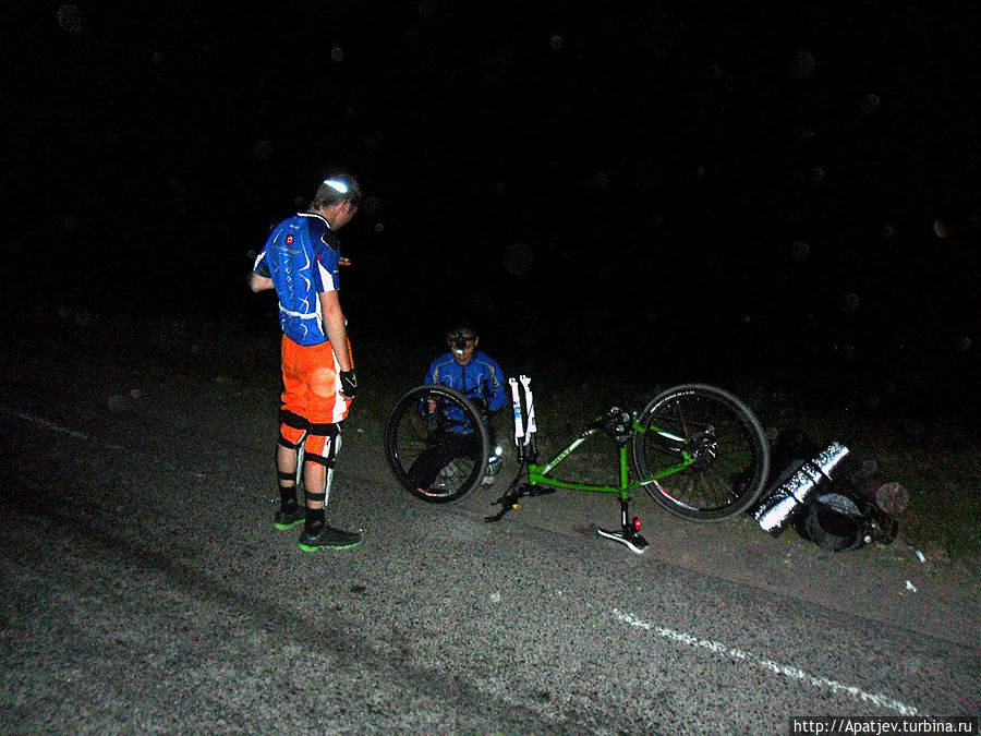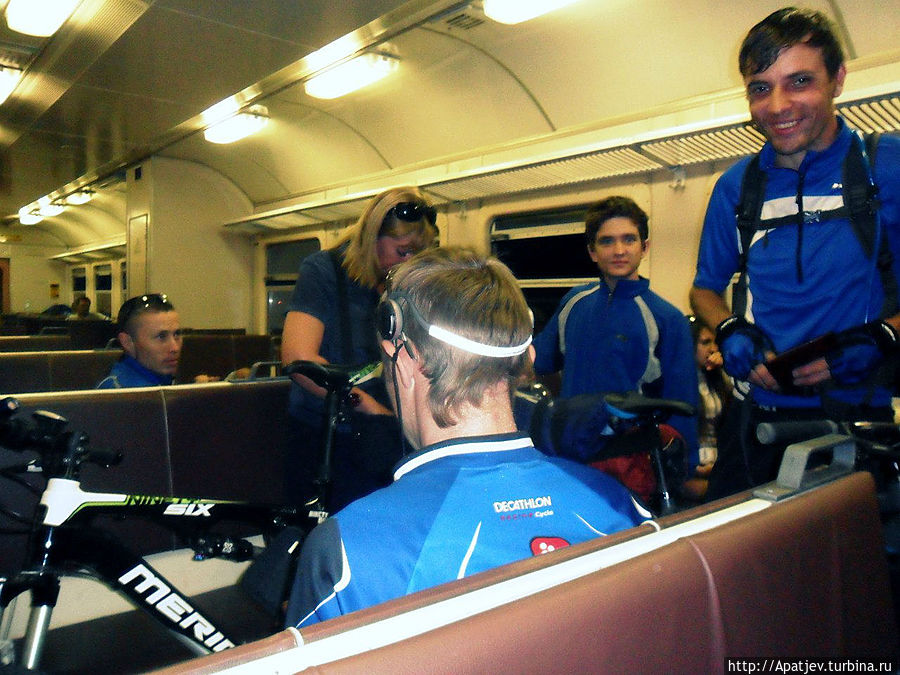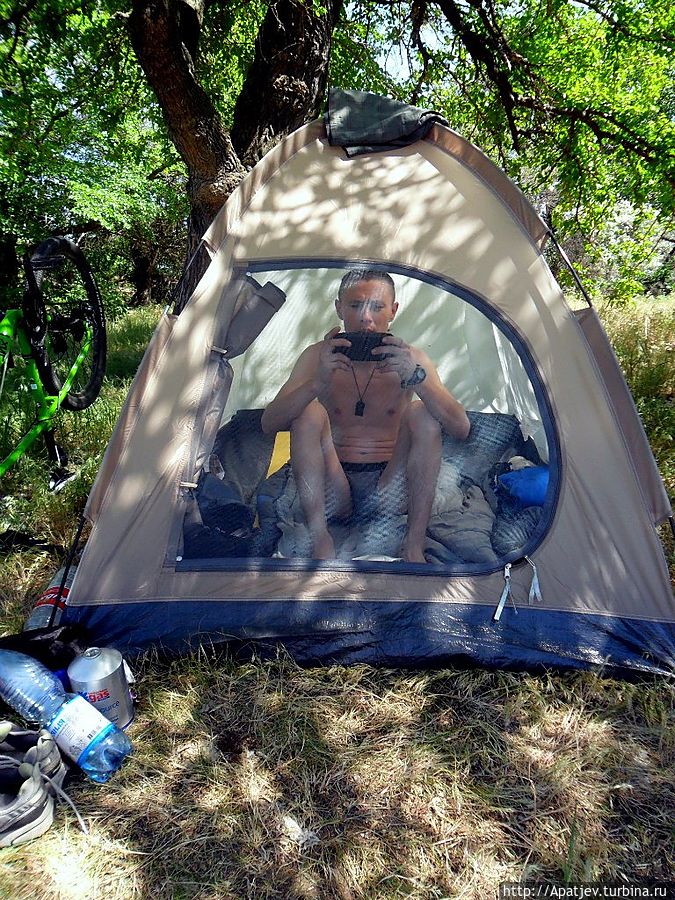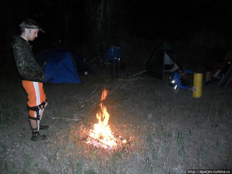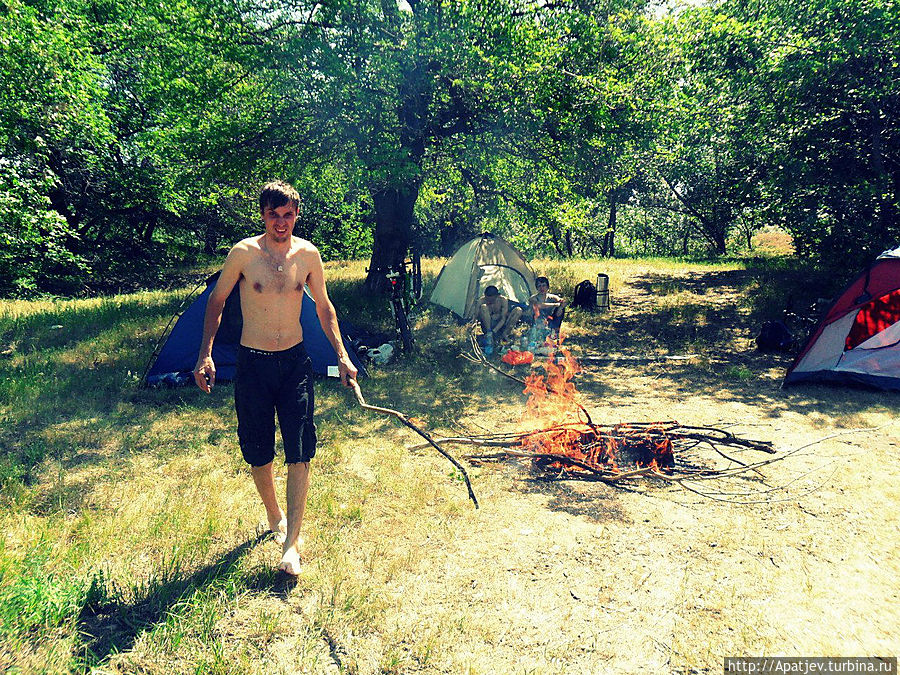 Дата: 12.05.2012г. — 13.05.2012г. Пройденный путь: 96 км. Средняя скорость: 24 км/ч. Максимальная скорость: 54 км/ч. Стартовали поздним вечером. По пути был один прокол у члена группы. За 3 часа доехали до Аксарайска и разбивали лагерь в свете фонарей. Планировали встать на берегу, но в темноте попытки выйти на него не привели к успеху и решили ставить палатки в небольшой низине, в которой постоянно пахло газом с находящегося неподалеку Астраханского Газоперерабатываюшего Завода. Поужинали и улеглись глубокой ночью. Ночь была весьа прохладной. На утро пошли на разведку искать берег реки. После неё были сильно удивлены тем, что берег находился буквально в 50 метрах от нашего лагеря. Передислоцировались туда в спешном порядке. Несколько раз ездили в поселок за водой и продуктами. Купаться не решились, водичка была еще не ахти. Во второй половине дня выдвинулись обратно в город. Проехав километров 20, решили добираться дальше на электричке, хотя некоторые участники хотели ехать своим ходом. В целом походом остались довольны все. Ходите в походы и будьте здоровы!