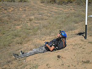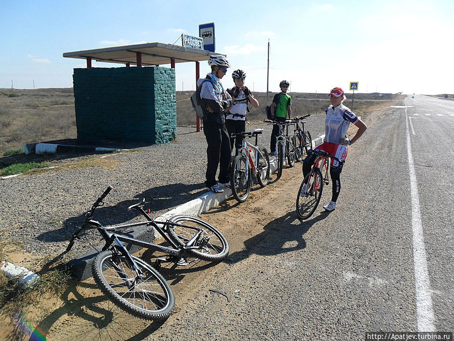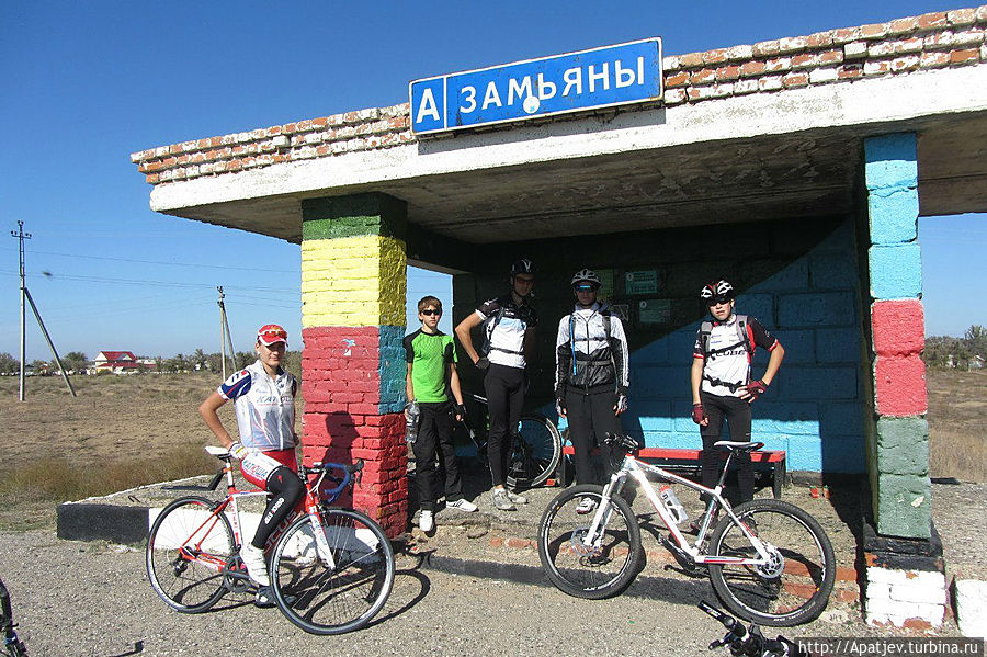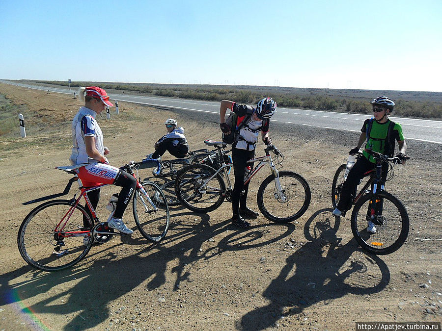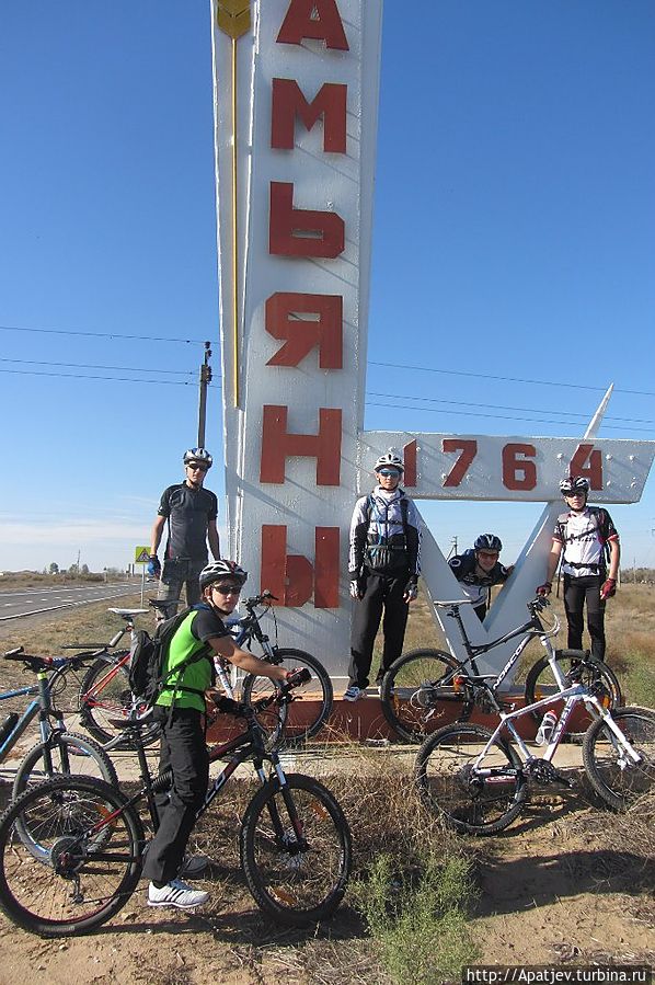 Одним прекрасным осенним днем пришла мне идея съездить в завершающий поход в сезоне. Собирались ехать с ночевкой, но дождь попутал все наши планы. Набрали группу в семь человек. Стартовали утром вшестером. На выезде из города к нам присоединилась мастер спорта по велоспорту Виктория на шоссере. Она нас сразу предупредила, что, если будем отставать, то не будет нас ждать, так как ей нельзя выбиваться из графика тренировок. Закупились, раскидали по рюкзакам и выехали. Один из участников похода почти сразу начал отставать из-за высокого темпа. В итоге, через 30 километров после старта он позвонил нам и сказал, что возвращается в город. Но мы забыли, что почти все продукты, крому всяких шоколадок, печенья, булок и конфет остались у него, а впереди нас ждала только бескрайняя степь. К Замьянам добрались часа в три. Пополнили запасы провианта и, перекусив и набравшись сил, тронулись в обратный путь. Доехав до г. Нариманова Виктория и Тимур покинули нашу группу, т. к. им нужно было домой, а мы решили доехать до вододелителся, гидротехнического сооружения, которых в мире всего два! Отдохнув и перекусив, выдвинулись в город, т. к. уже темнело. Весь оставшийся путь (около 40 километров) мы ехали в темноте. Благо у каждого были фонари. У меня, не кстати случился прокол, который клеить не было ни желания ни сил. Приходилось качать колесо каждые 5 минут. Домой добрались почти без сил, сказался высокий темп езды и пройденная дистанция. Но, тем не менее, впечатлений от поездки превеликое множество и даже не верится, что смогли за день столько проехать!