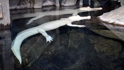 Это не альбиносы, это редкий вид настоящих белых крокодилов. Белый цвет обусловлен генетически. Они распространены по всему миру, например в Австралии или в болотах Луизианы, но они настолько редкие, что среди пяти миллионов американских аллигаторов белых не больше десятка.