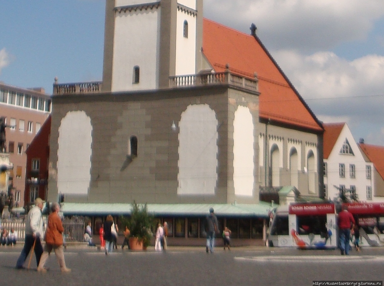 Многие забывают, что башня Перлахтурм одновременно служит и колокольней примыкающей к ней католической церкви Святого Петра. Поэтому, спустившись с башни, не забудьте зайти и в церковь!