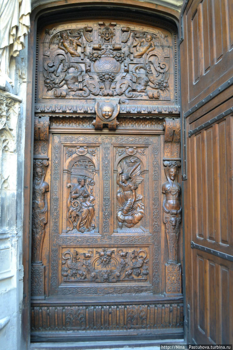 Восхитили врата из орехового дерева, великолепная резьба и очень красивый, тёплый цвет. Разделяет их фигура мадонны с младенцем.