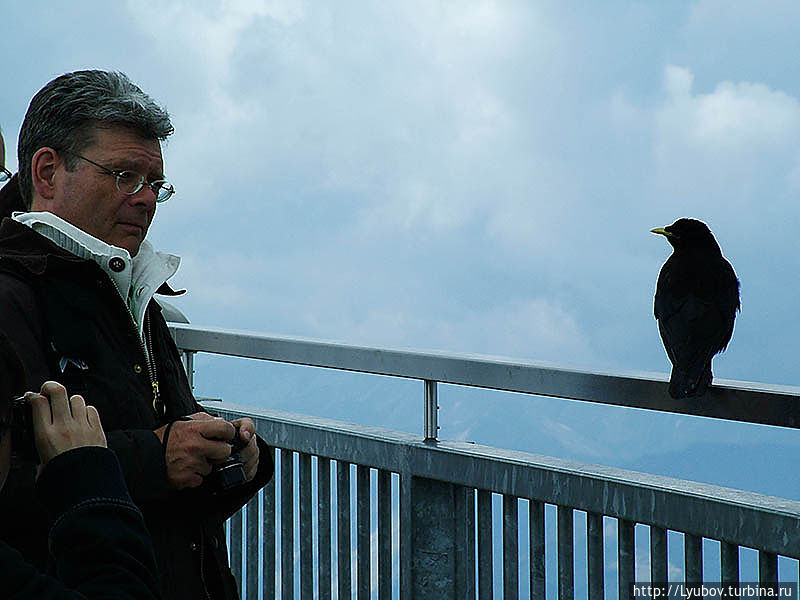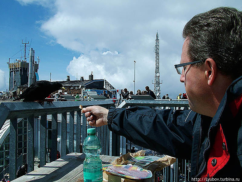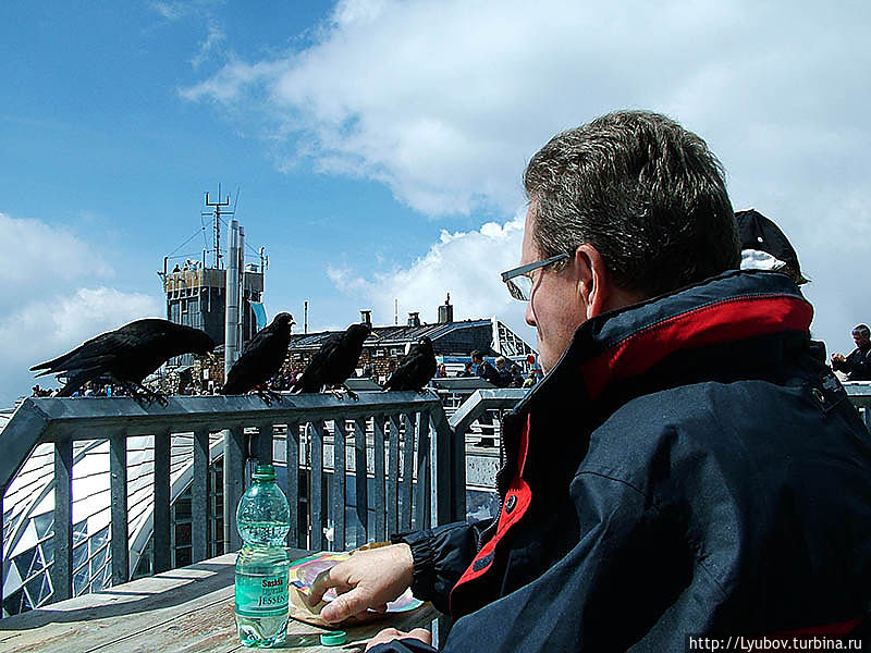 Еще запомнились очень смелые обитатели тамошних мест — птички с желтыми клювами (возможно альпийские галки). Они даже не смелые, а наглые — садятся напротив и требуют еду. Хотя их можно понять как еще прокормишься в горах)