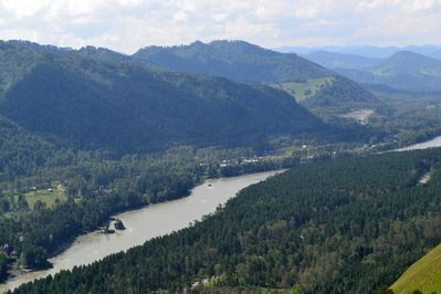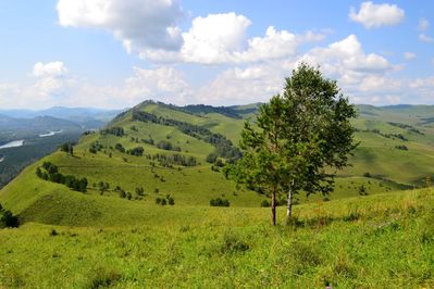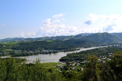 Вокруг бескрайние просторы, горы покрытые зелеными лесами и вершины гор, и красавица Катунь.