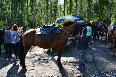 Это была единственная экскурсия на Алтае, по поводу участия в которой я сомневалась. Предстояла небольшая прогулка верхом на лошадях. Быть ей или не быть, я для себя не решила даже прибыв на место её проведения. Честно говоря были опасения получится ли у меня усидеть на лошади, а уж тем более ещё и управлять ей. Первый и последний раз я ездила верхом много лет назад, будучи отправленной на уборку картофеля, после окончания первого курса института.