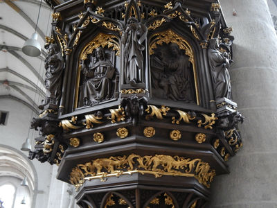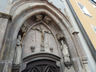 В Айхштет мы попали в середине декабря, прошу не удивляться мрачности снимков. Это был выходной, т.е. адвент. Праздничную иллюминацию зажигать было рано, маленький рождественский базар возле кафедрального собора был еще закрыт. В старом городе людей было крайне мало, некоторое оживление было на Марктплатц, где был крестьянский рынок, возле епископской резиденции шла презентация туристической фирмы, специализирующейся на паломничестве в Ватикан. Наклейку Папы Ратцингера уже успели заменить на Франциска, но желающих ехать балгословенным автобусом было немного. Зато на парковке возле приходской церкви свободных мест не было, шла служба. В читальном зале университетской библиотеки, куда мы случайно забрели, посетителей было достаточно. В кафедральном соборе с утра службы не было, поэтому туда я смогла зайти и поснимать.