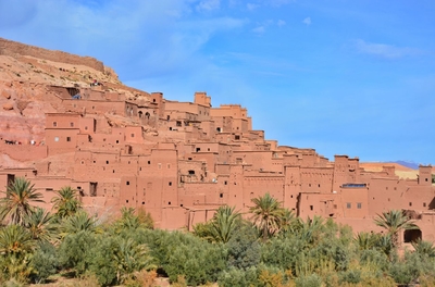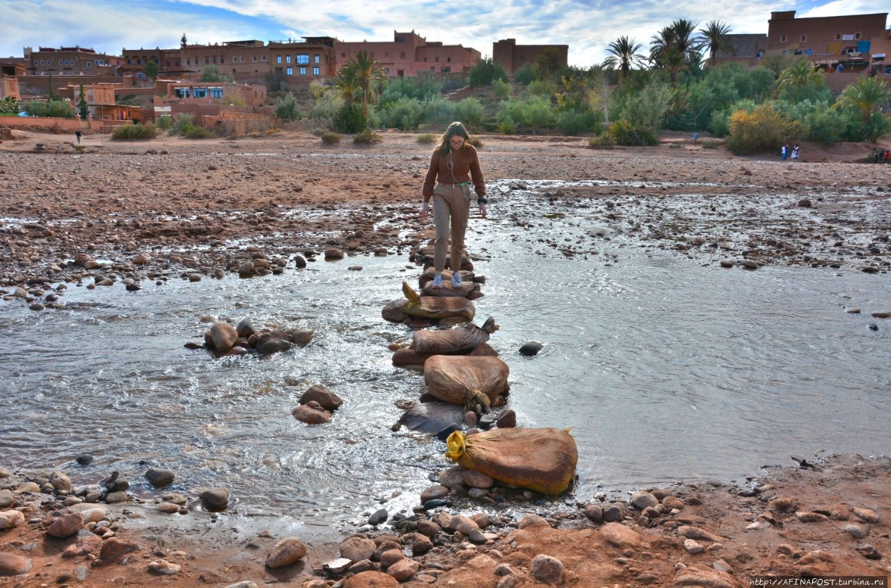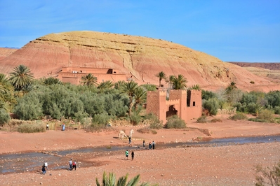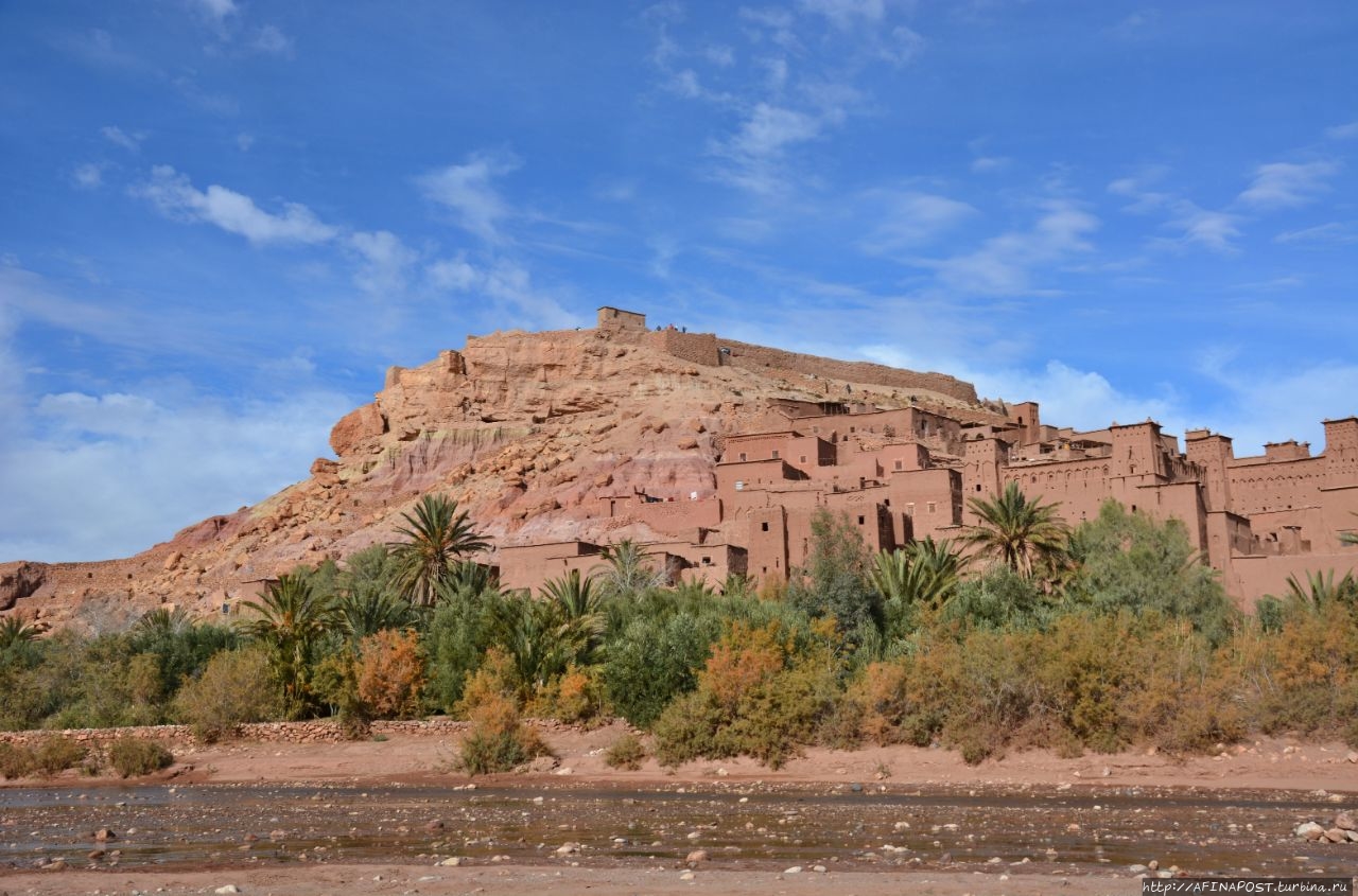 Ксар Айт-Бен-Хадду – укрепленное поселение, возведенное в одиннадцатом столетии на холме в долине, на левом берегу реки Уарзазат. Река берет начало с южных склонов Высокого Атласа, проходит через пустыню и дальше теряется в песках Сахары. Вдоль речного русла пролегал путь торговых караванов.