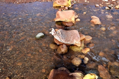 В давние времена ксар имел величественный Главный портал, который сейчас не несёт уже своей функции, но если перейти вброд небольшую речку ( кто-то заботливо положил на валуны мешки с песком, чтобы не соскользнула нога при переходе), то окажешься прямо перед ним.