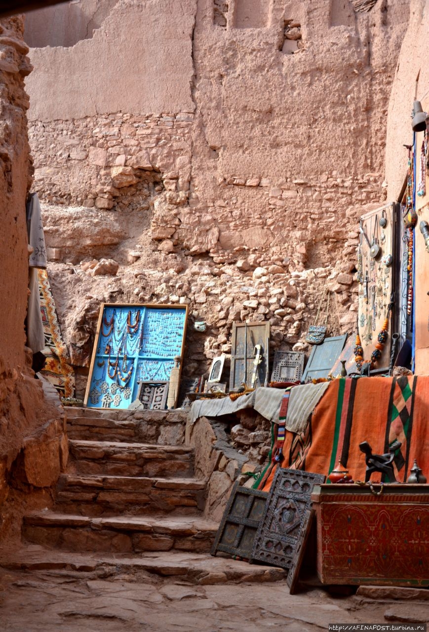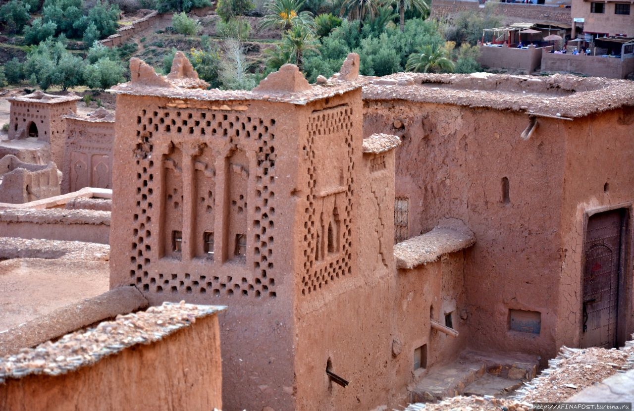 Колоритный старинный город сложен из десятков глиняных касб – крепостей, которые словно взбираются на гору. Крепости и их башни искусно украшены геометрическими орнаментами.