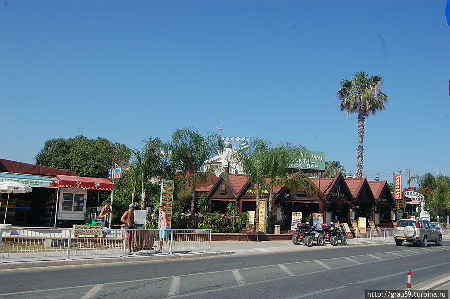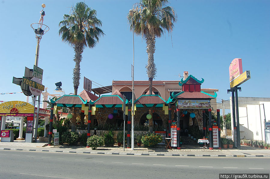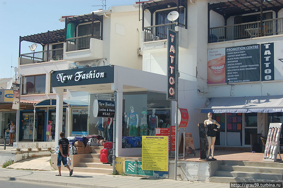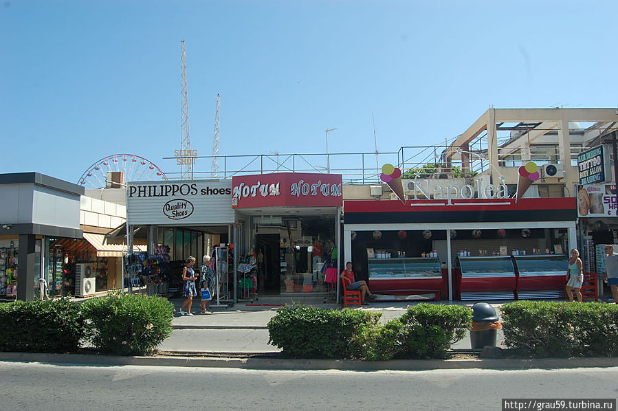 Одна из улиц Айя-Напы Leoforos Nissi тянется на несколько километров вдоль моря с многочисленными отелями. На этой улице масса магазинов, кафе и ресторанов, каждый из них старается чем-нибудь, но выделиться.