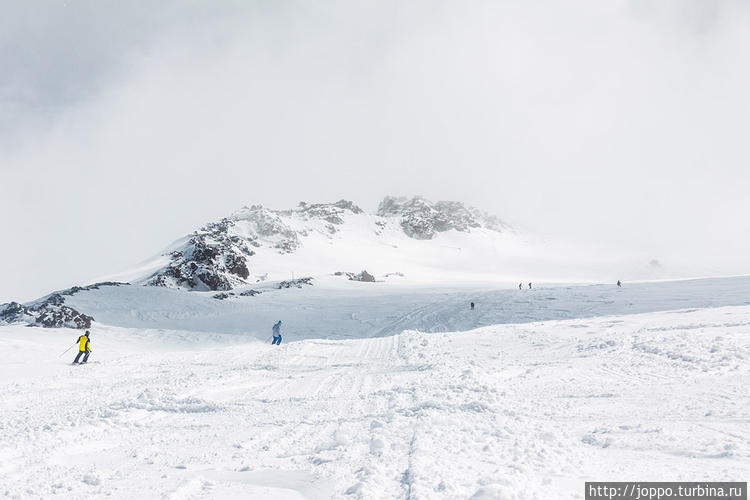 Домбае. Но там, помнится, реально были камни и лужи, а на Эльбрусе нам вполне хватило пухляка.