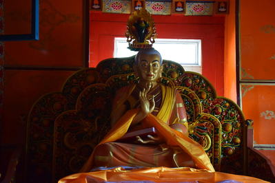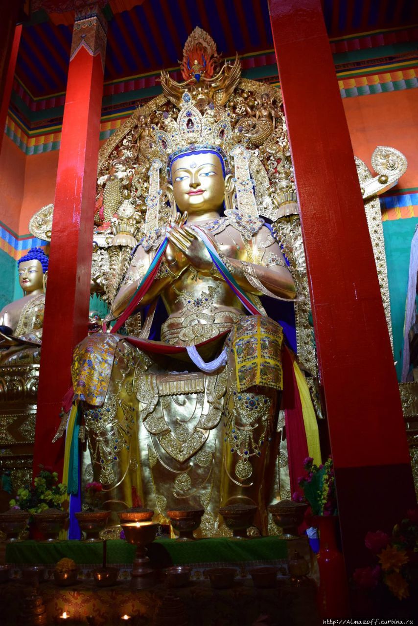 Монастырь обветшалый, но аутентичный. Нам открыли главную гомпу, внутри прекрасные статуи Махакалы и Будды Будущего — Майтреи. Тай Ситу считается эманацией Майтреи. Мы попросили показать комнату Защитников, нам отказали. Может и к лучшему. Когда Педро Гомес побывал там, в конце 80-х, ему не понравилось. Он считает, что там в то время проводили какие-то ритуалы, связанные с чёрной магией. Мы спросили про комнаты, в которых жил 16-й Кармапа, когда его в возрасте восьми лет забрали из семьи (из Денкока) на воспитание в Палпунг и возвели здесь на трон. Нас толи не поняли, толи сделали вид, что не поняли.