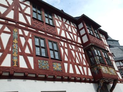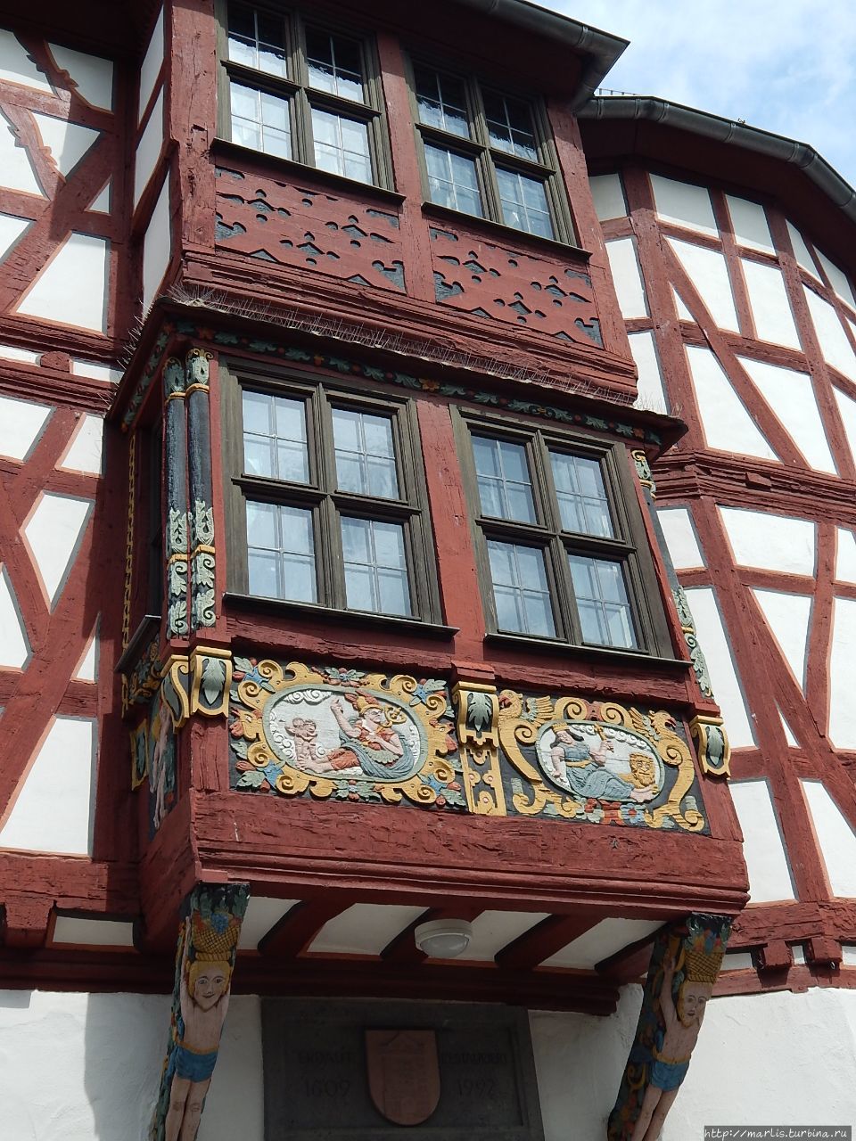 Старейшие части здания относятся к 1669 году. Фасад украшен резными барельефами, гербами Трира и Нассау, символическими фигурами Фортуны , пеликанов и аистов. Есть даже более поздние рельефы в виде знаков зодиака.