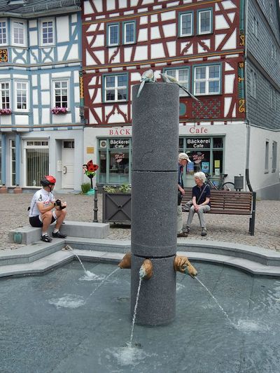 Центральная площадь как часто бывает, называется Марктплатц — Рыночная. Это ее официальное название. В народе ее называют Козой, как вы можете догадаться, это случилось благодаря фонтану. Честно говоря, никакой легенды о Камберговой козе я не нашла, но неподалеку обнаружился другой фонтан-памятник большому пожару 1891 года. Возможно тогда коза разбудила брандмайстера?!