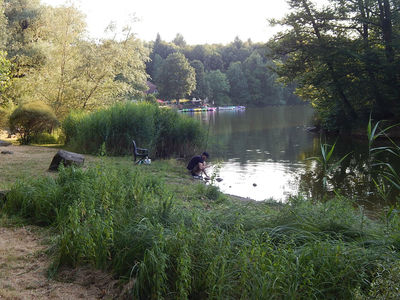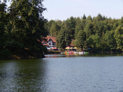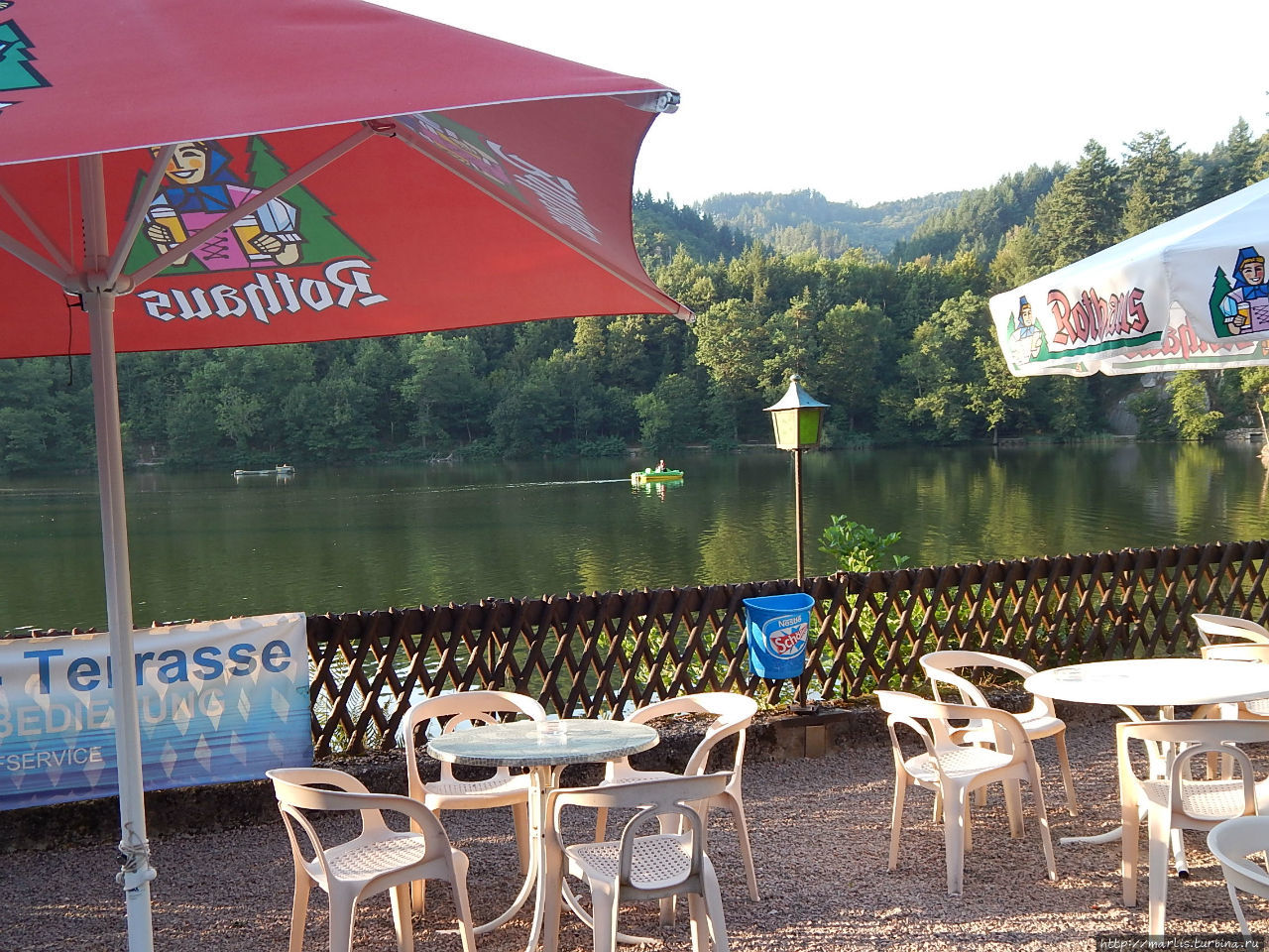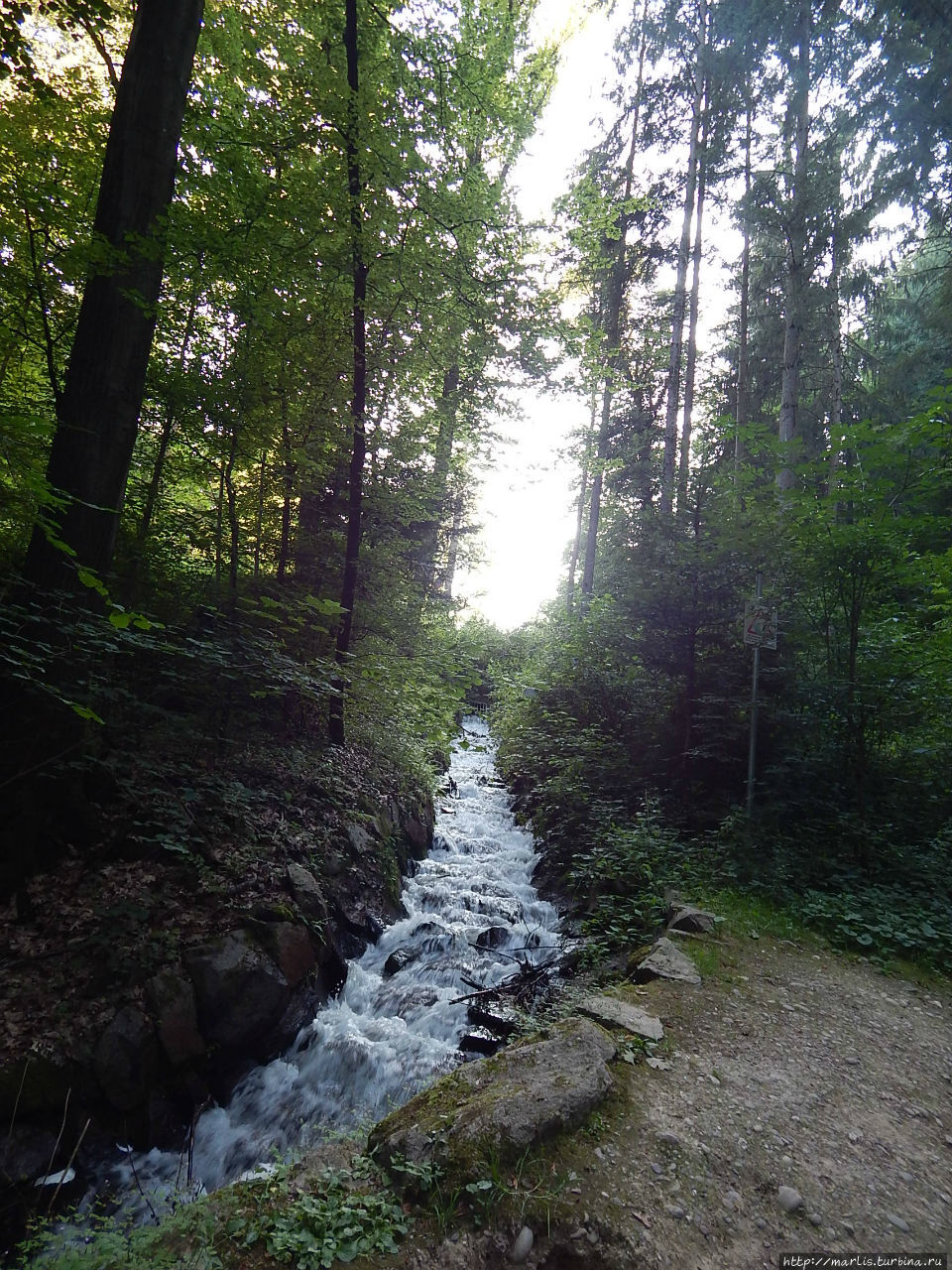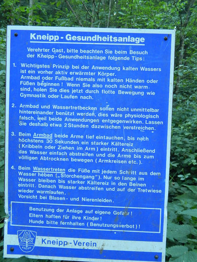 Ортопедического Санатория, поднимаясь по улице Бергзеештрассе, постепенно уходящей в лес. Ета дорога занимает не более получаса и выводит вас прямо к ресторану)).Можно пойти по длинному пути, вдоль ручья, как собственно предлагается в официальном описании маршрута. Этот путь более разнообразный, он займет у вас немного больше времени. Сначала у вас будет возможность побродить босиком по различным видам грунта (Барфуспфад), после чего вас встретят натуральные ванны Кнайппа с родниковой водой.