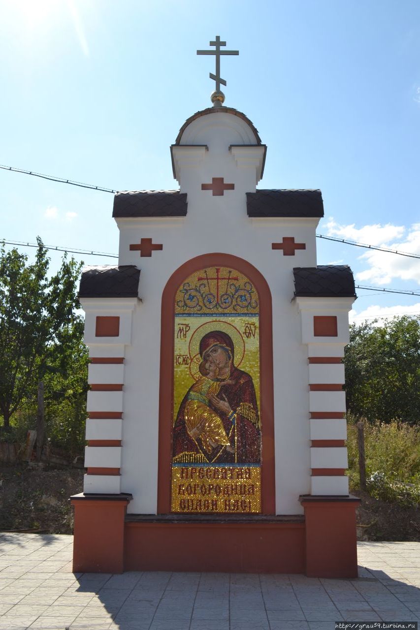 Бабки-ёжки и яблочная феерия. Но времени было достаточно и когда я увидел батюшку, который что-то показывал дорожным рабочим, то вспомнил, что в Багаевке есть храм, доехать до которого всё было недосуг. А тут замечательный случай подвернулся, чтобы храм навестить.Когда проходил мимо рабочих и батюшки, то увидел как он показывает, как лучше сделать дорожку к мозаичной иконе, что была воздвигнута возле дороги.