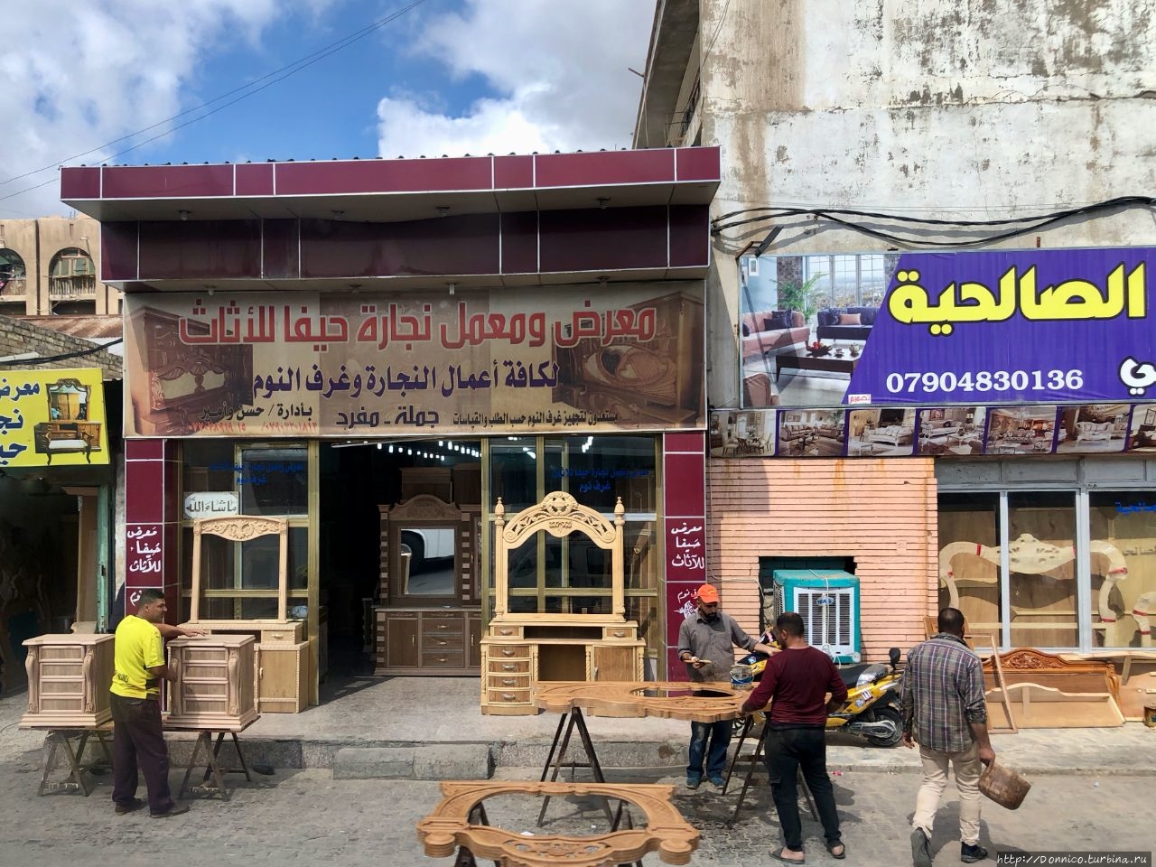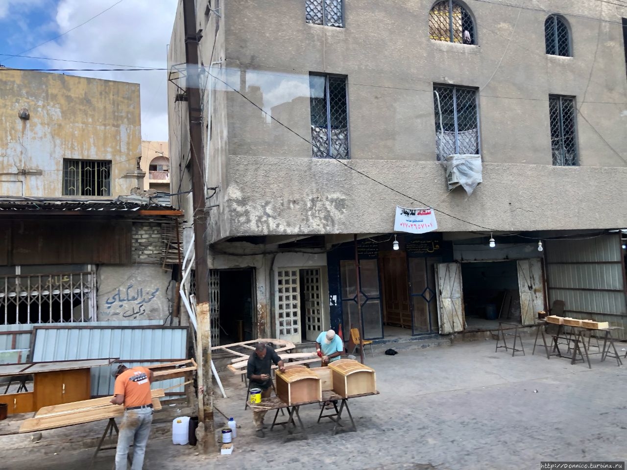 Из окна автобуса мелькали кадры того, чем живет Багдад и то, что уже редко можно увидеть в цивилизованных странах. Например мебельщики, которые прямо на улице напротив своего магазина что-то выпиливают, ваяют, лакируют...