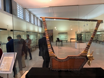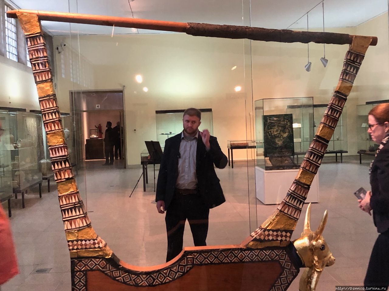 Но уже на выходе мое внимание привлек необычный музыкальный инструмент, который был найден на раскопках королевского кладбища города Ур. Кто-то из членов царской династии был похоронен с этим предметом.