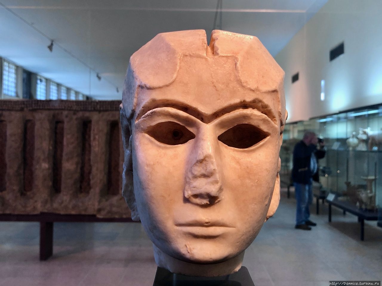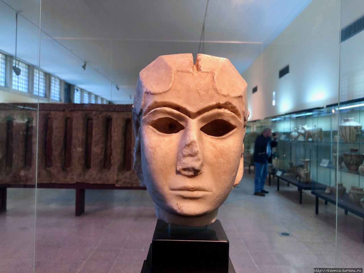 Это известная Маска из Варки, деревни, находившейся недалеко от древнего города Урук, поэтому ее еще называют Леди Урук. Маска сделана из белого мрамора, а глаза и брови были инкрустированы драгоценными камнями, поэтому можно представить как красиво это могло смотреться.