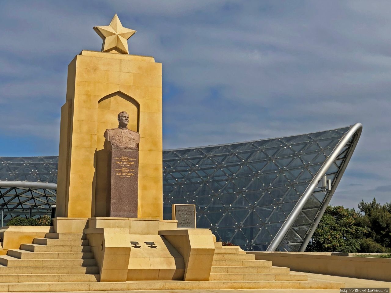 Не адром на Аллее шахидов в Баку отдельным, и самым заметным монументов увековечена память соотечественника, дважды героя Советского Союза Ази Асланова, погибшего в 1945 году.