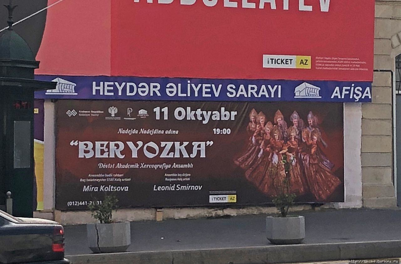 Этот концертный комплекс был построен еще в 1972 году и по прежнему является самой большой сценой в республике. Сперва он назывался «Дворец имени В. И. Ленина», с 19991 года это "Дворец Республики" и в 2004 году получил имя Гейдара Алиева. Кроме концертов там проходили церемонии инаугурации президентов страны. В момент нашего визита дворец готовился к гастролям академического ансамбля "Березка"...
