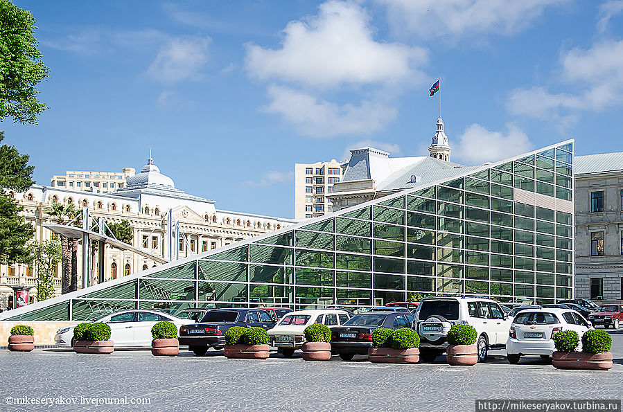 Здание по форме чем-то отдалённо напоминающее французский Лувр, это вход в Бакинское метро (станция Ичери-Шехер), я до сих пор немного жалею, что на бакинском метро, я так и не покатался.