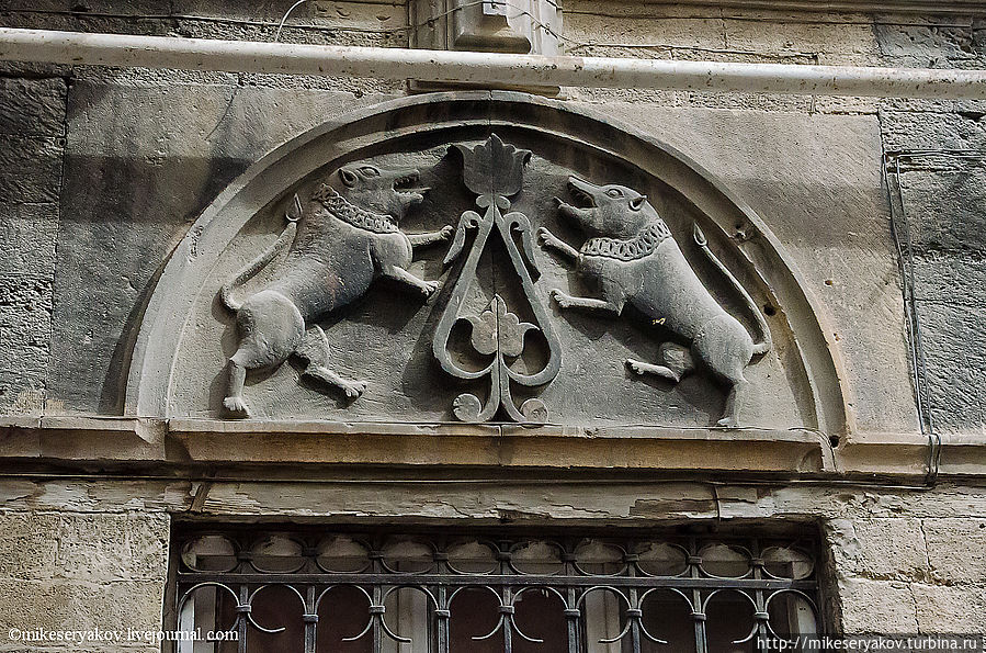 Древние украшения на домах старого города.