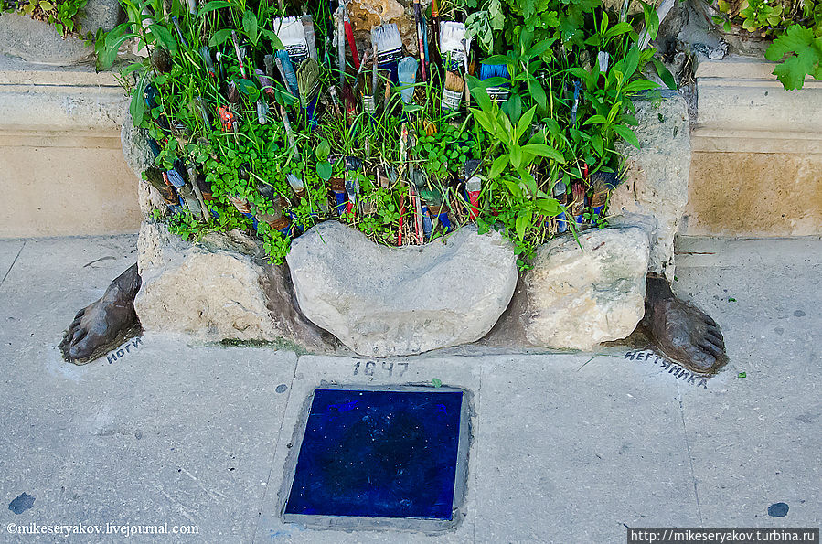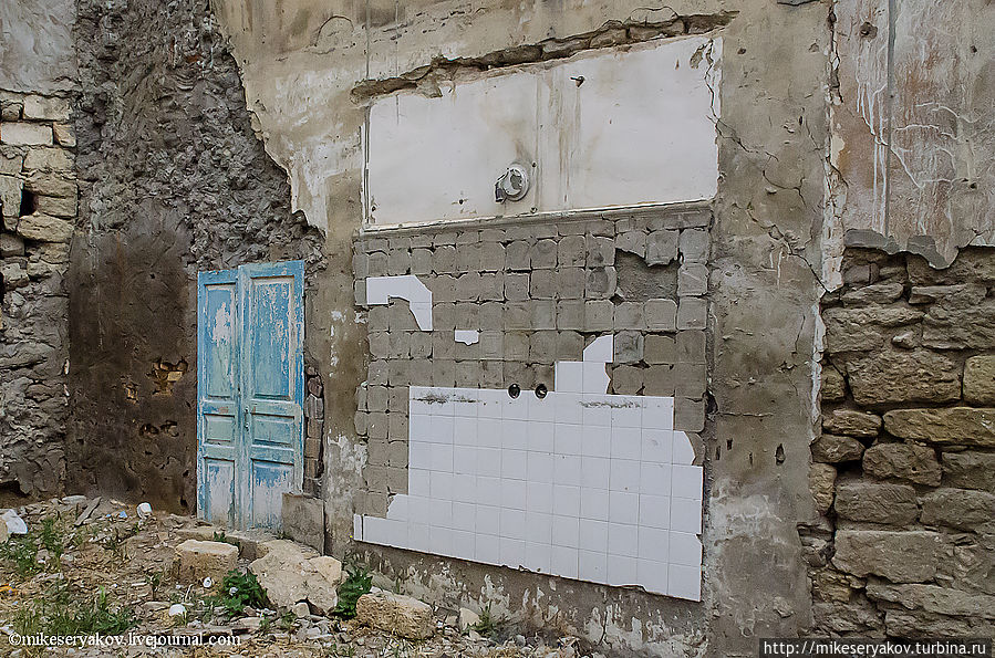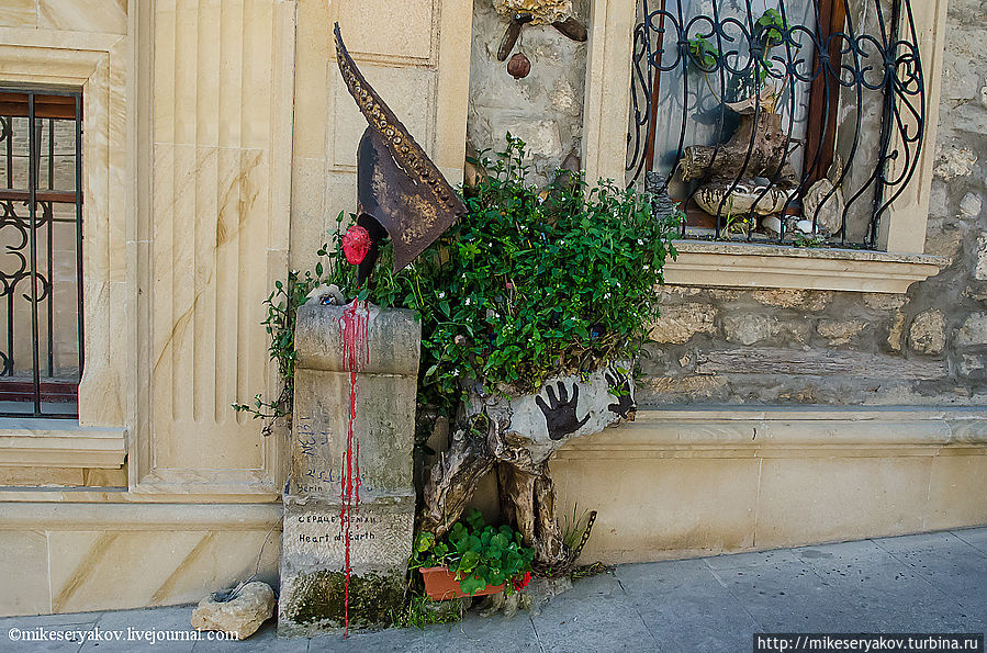 В старом городе проживает современный бакинский художник Али, свой дом он украсил вот такими вот импровизациями. Эта композиция называется «Сердце земли».