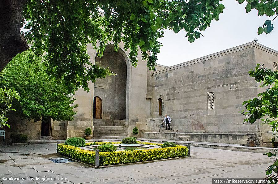Площадь дворца около гектара, а все здания построены в 13-15 веках. Из старинных построек дворца открывается вид все на те же Флейм Тауэрс или Баку 21-ого века.