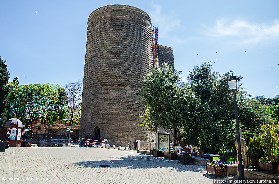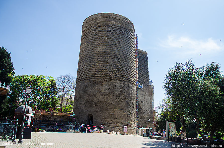 «Гыз Галасы» или «Девичья башня» — тоже символ столицы Азербайджана. Точная дата постройки этой башни неизвестна, но историки считают, что ее строили в два этапа, нижнюю часть построили в глубокой древности, а верхнюю достроили уже в 12-ом веке нашей эры. В 18-19 веках башня использовалась как маяк, в нынешнее время, маяки уже не актуальны, так как в наш мир пришёл GPS.