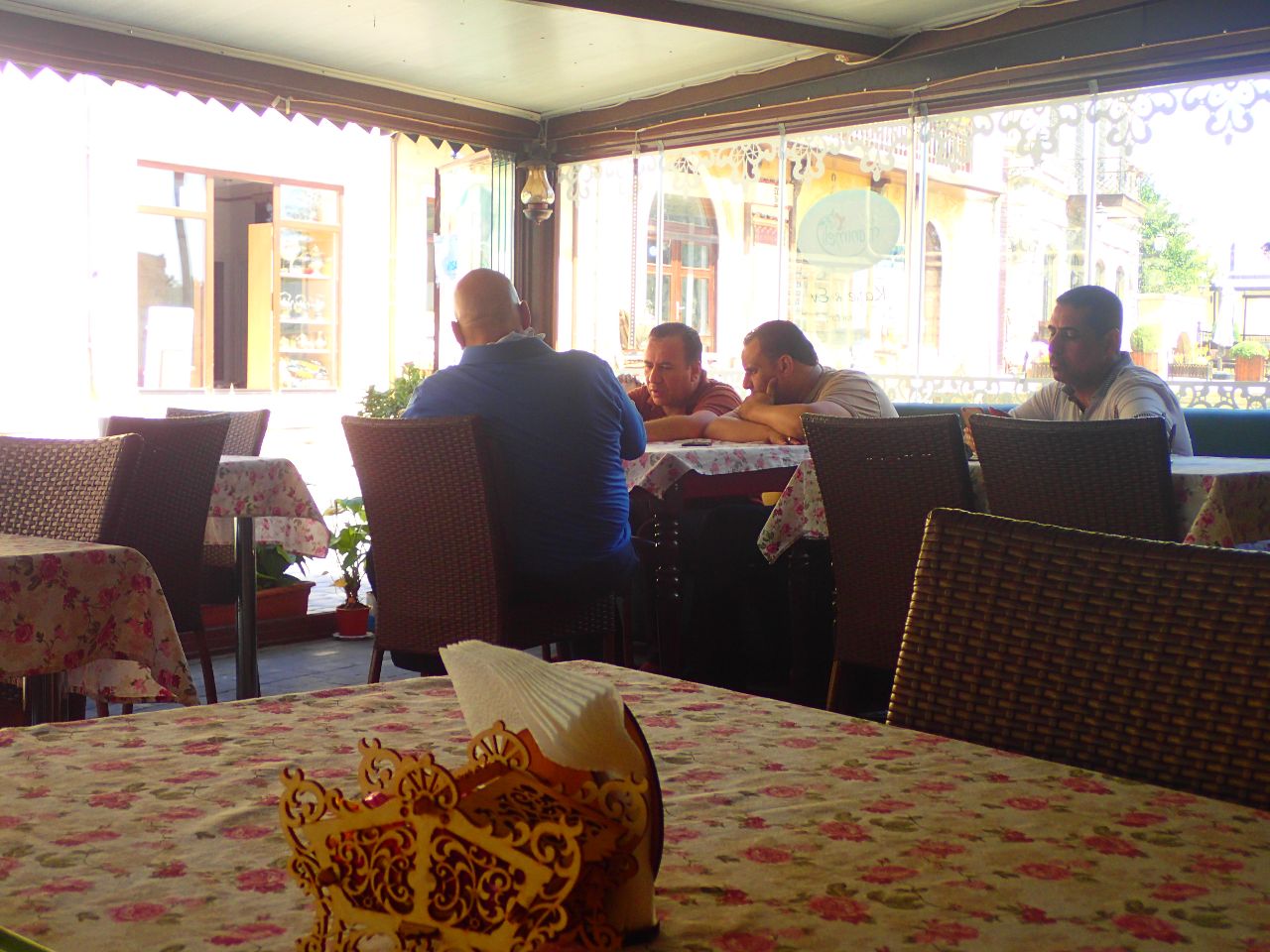 В кафешках местных много мужчин азербайджанцев. Где кушают их жёны в обеденные перерыв я ума не приложу. Вечером также в кафе преимущественно мужчины, официанты также мужчины. Всё-таки Азербайджан — это страна для мужчин.