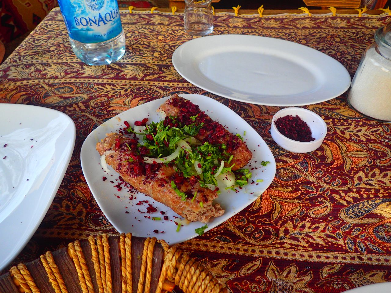 Также есть блюда из рыбы, Каспий-то рядом. Но этих блюд поменьше чем из мяса. Ибо вылов рыбы здесь квотирован.