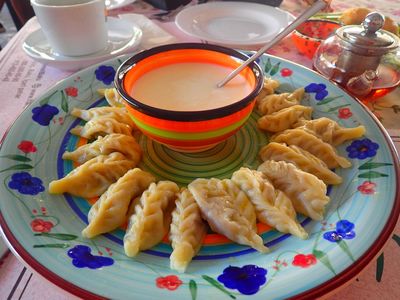 Это такие маленькие пельмешки чаще с бараниной внутри. Пельмешки лепят вручную, поэтому форма их всегда уникальна.