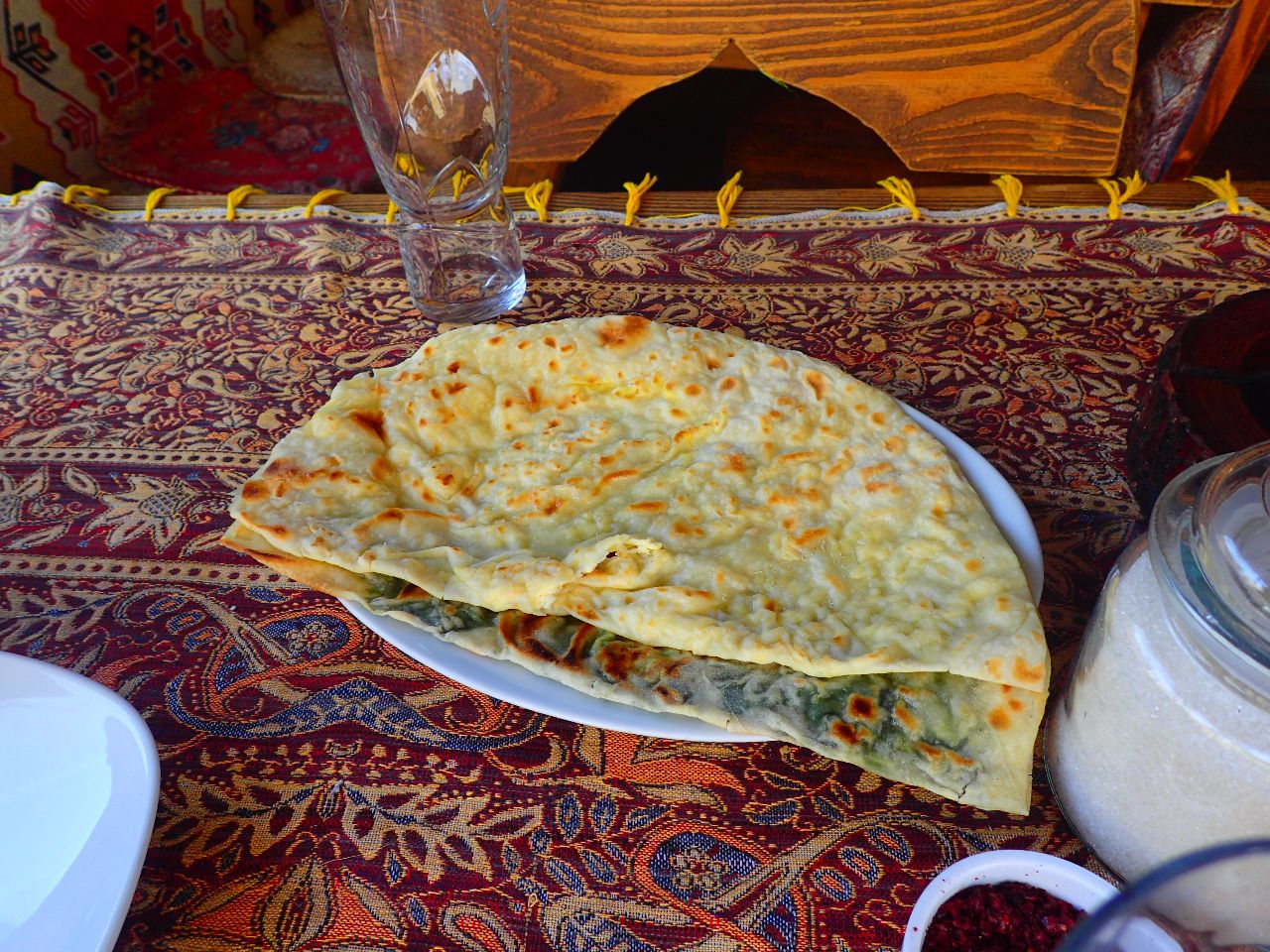 Кутабы это пирожки с разнообразной начинкой. Начинки бывают разнообразные: мясо, зелень, тыкву, зёрна граната, сыр, лук.