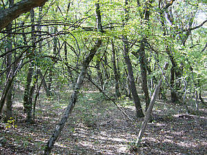 Алсу (в переводе с крымско-татарского "красная вода") — так называется урочище, где расположен этот страшно секретный в прошлом объект. Он поджидал нашу маленькую группу, раскрыв черные рты огромных потерн, в которых теперь царит мрак запустения, а, может, и еще что-то. Но обо всем по порядку. На повороте с ялтинской трассы к поселку Морозовка нас ожидал в своей машине севастопольский диггер Эдуард — отличный рассказчик и очень увлеченный подземными сооружениями Крыма человек. Вслед за нашим проводником мы двинулись к объекту 221, проехали небольшим горным лесом и уперлись в траншею. Дальше на автомобиле здесь не проехать, но есть и другая дорога, но чтобы проехать по ней, надо договариваться с лесником. Мы же вышли и отправились к подземелью пешком.