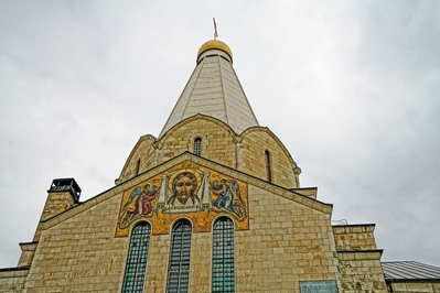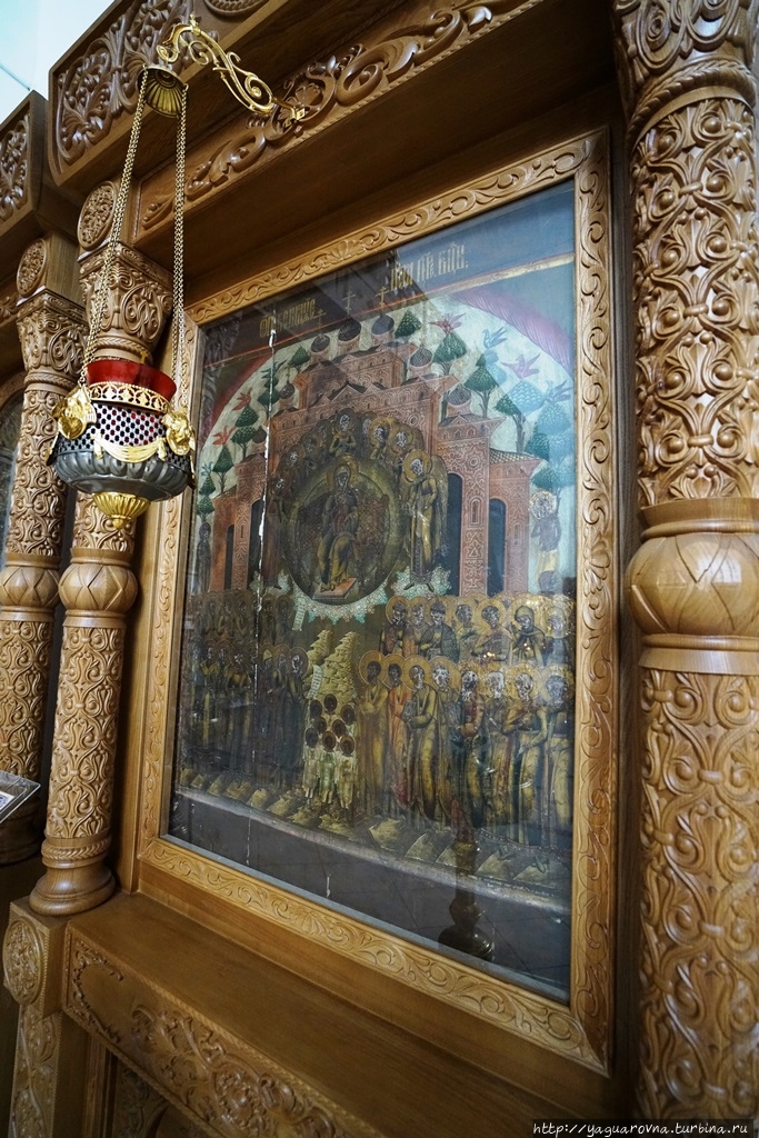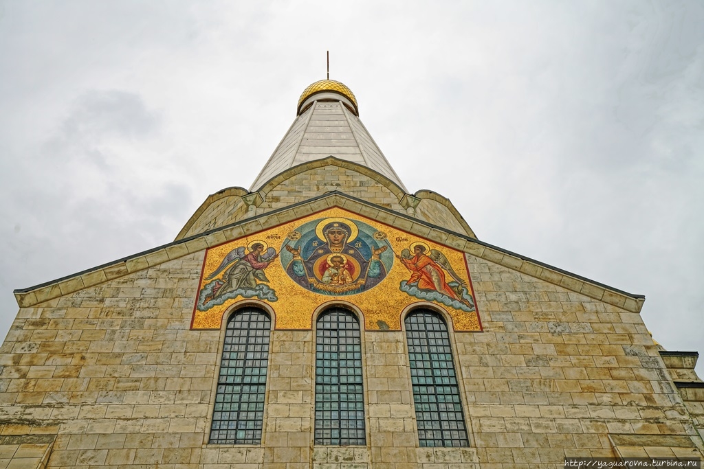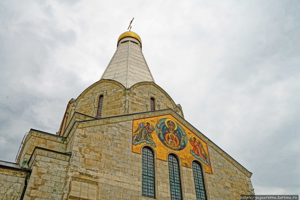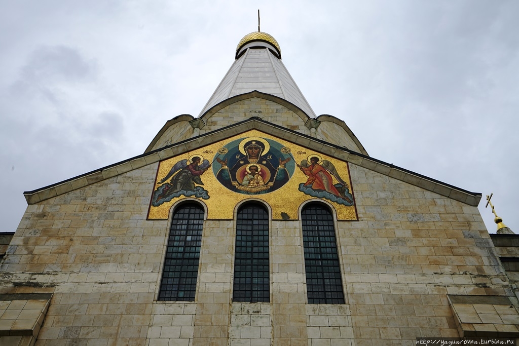 Примечательная особенность храма – мозаичные панно, выполненные по эскизам ( их еще "картонами" называют) И.О. Чирикова в петербургской мастерской В.А. Фролова: Троица над главным входом, западными вратами (при нас была закрыта строительными лесами), Нерукотворнный Образ Спасителя над южным ,