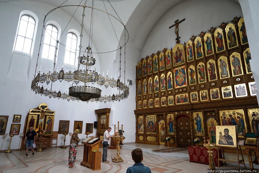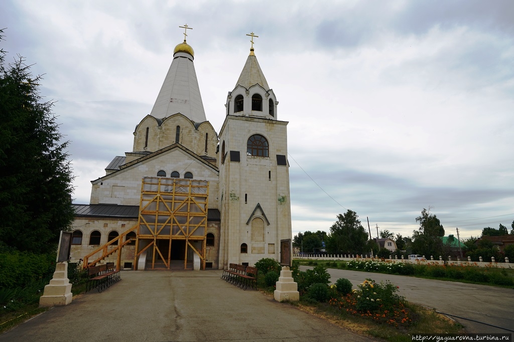 На деле же скорее всего камень поставлялся из Жигулёвских каменоломен: и ближе, и не менее качественный. Им облицованы не только основные корпуса, но и оба шатра: над крестильней и колокольней.