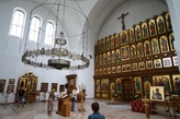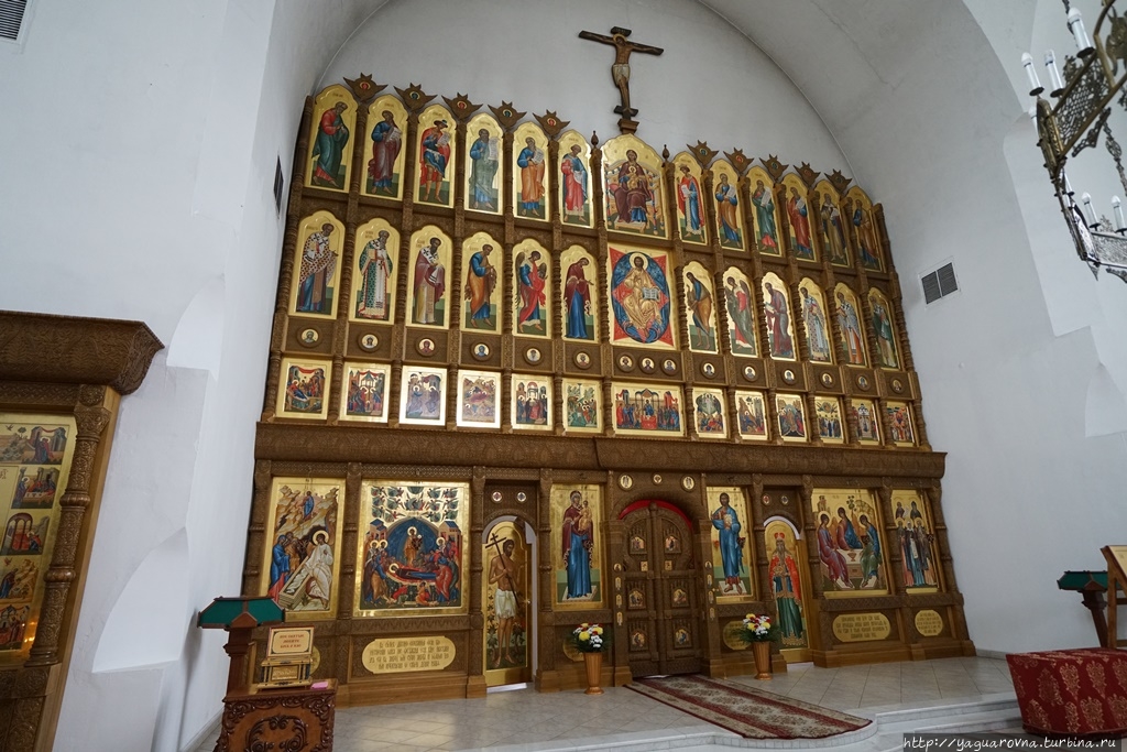 Иконостас храма был пятиярусным, обитым басмой. В нём было 73 больших иконы и 45 маленьких.
