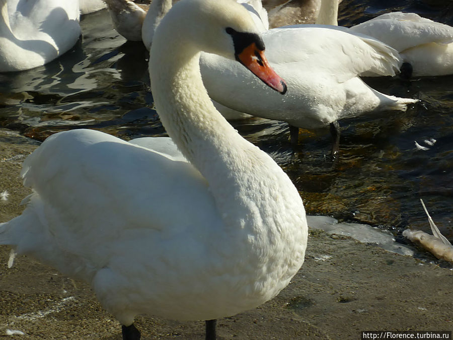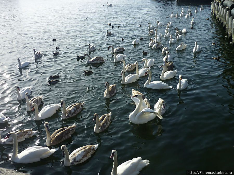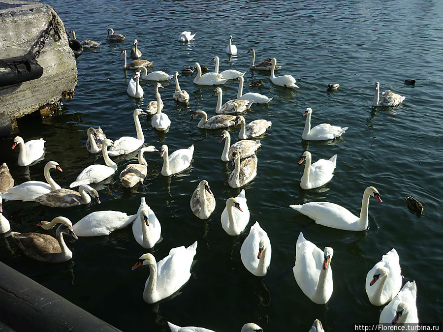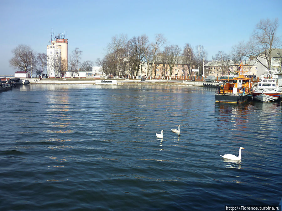 Никогда в жизни я не видела столько лебедей как в Балтийске! Уверенные и наглые, они подпускают к себе совсем близко, рассчитывая на еду (кто поедет — прихватите с собой что-нибудь, а то мы боюсь их разочаровали; впрочем, местные жители активно подкармливают лебедей). Давайте порадуемся этим красавцам, а город и корабли будут просто фоном.