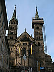 Уютную Соборную площадь Бамберга по центру украшает Императорский собор с четырьмя остроконечными башнями- действующий храм, в котором проводятся службы, Старая и Новая резиденции архиепископов, являющиеся на сегодняшний день музеями. Храмы Германии всегда располагают нас к посещению. Они удивительно пропорциональны, не отягощены лишними деталями, их облик гармонично вписывается в архитектуру городов, не бывает много прихожан и как правило разрешена фотосъемка. В Бамбергский собор мы тоже зашли и он великолепен! К сожалению, фотографии в храмах у меня получаются особенно плохо, поэтому их немного. Если на выходе из собора спуститься по ступеням и пойти налево, пересечь площадь и, пройдя под аркой, свернуть направо, то можно попасть в сад роз, который, логично предположить, безумно красив в период цветения. Нам же довелось увидеть лишь последние "капли" этой красоты. С террасы сада открывается замечательный вид на город, а также на монастырь и башни собора Святого Михаила.