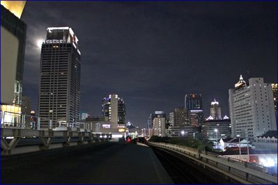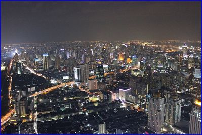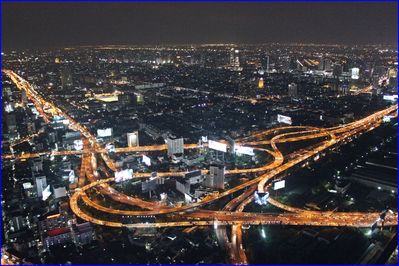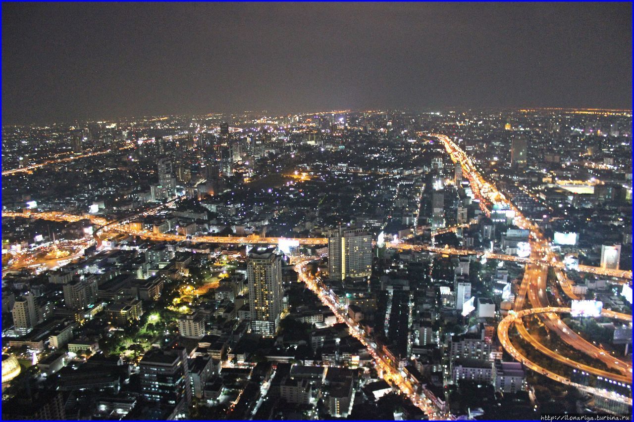 Бангкок очень впечатляюще выглядит именно вечером и ночью. Все эти взметнувшиеся ввысь махины домов подсвечиваются, сияют разноцветными огнями и мигают. Ощущение такое, что золотые цепи дорог, яркие огни зданий и разноцветных реклам — драгоценности, переливающиеся на черном бархате ночного неба. Ошеломительная картина для тех, кто не избалован такими зрелищами!