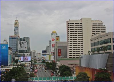 Первое впечатление о Бангкоке сложилось из многих кусочков мозаики и оно было изначально положительным. Возможно, одним из фактором, был вид с балкона, ошеломивший меня непохожестью того, что я когда-либо видела. Выйдя впервые на открытый балкон, я глянула и подумала: "Ну, слова Богу! Уже хорошо!". Потом я все время таскалась сюда с фотоаппаратом и без, принесла кресло, сидела здесь вечером и утром. Я люблю высоту! Хотя и боюсь ужасно. По моему ни на чем не основанному разумению, созерцание без спешки и суеты города в высоты птичьего полета (ну или примерно такой высоты:), дает ни с чем не сравнимое понимание красоты и характера города. Причем любого города. А вовсе не массовое шатание по топовым достопримечательностям и, уж конечно, не забег по магазинам.:)