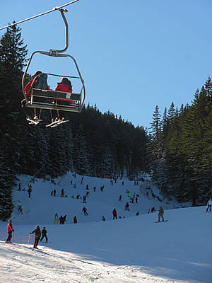 Для начала из Банско придётся отстоять большую очередь на фуникулёр для того, чтобы попасть плато Бундеришка Поляна, откуда в разные стороны расходятся другие подъёмники.