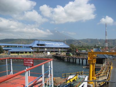 Солнце, ветерок, уже виден порт, но мы выжидаем, пока не освободится место у причала. Издалека видно, что порт Гилиманук меньше яванского Кетапанга. Почти в 11 часов мы въезжаем на остров.