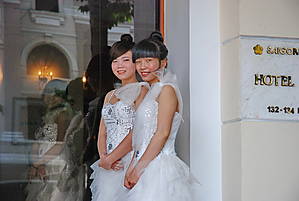 Довольно много молодых женщин и девушек выходят замуж за иностранцев и уезжают за границу. В страны Восточной Азии девушки часто уезжают через брачные агентства, а то и через мошенников. В Китае, Южной Корее, на Тайване не хватает невест, поэтому вьетнамские девушки выезжают, в первую очередь, туда. На Тайване в настоящее проживает около 200 тыс. женщин. Много их в других соседних странах, а также, в Чехии. Бывает, что в бегстве от бедности путем замужества за иностранцем многие девушки попадают в сексуальное рабство. В последнее время вьетнамских невест доставляют в Малайзию и выставляют на показ в кафе, чтобы будущие женихи могли увидеть "товар" лицом, не отправляясь за границу. Семьи девушек получают от брачных агентств за своих дочерей $5000-$10000 в зависимости от красоты будущей невесты.
